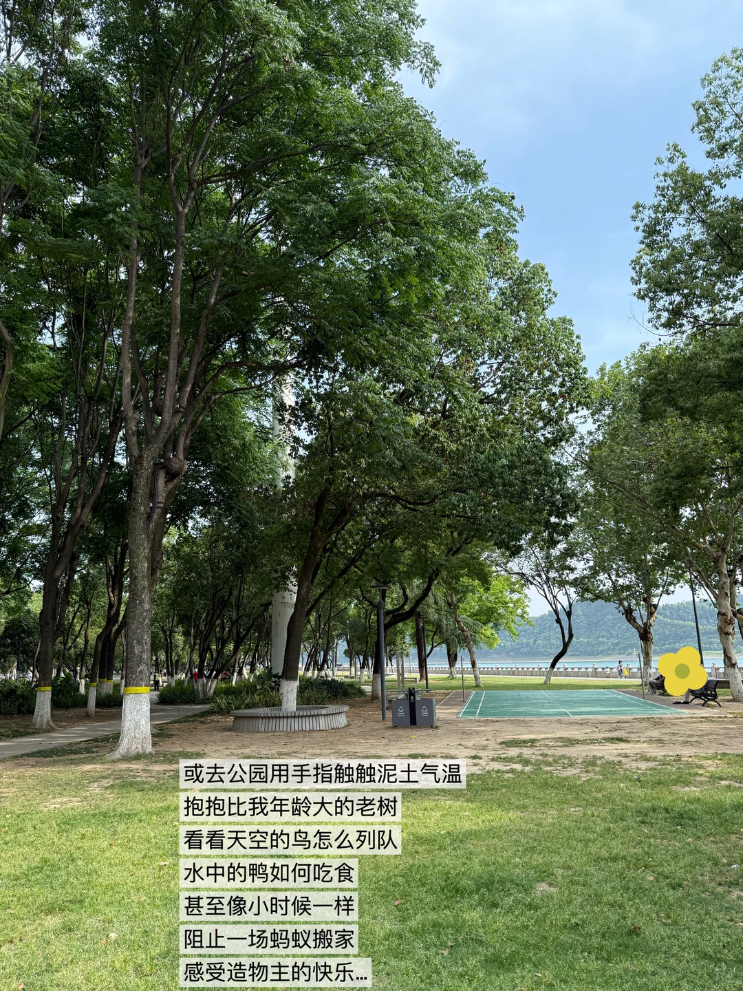 去公园用手指触触泥土气温,抱抱比我们年龄大的老树,看看天空的鸟怎么列队,水中的鸭如何吃食。甚至像小时候一样阻止一场蚂蚁搬家,感受造物主的快乐。在阳台种好活的绿植,对着它发呆——大自然没有kpi,它只管胡乱生长。