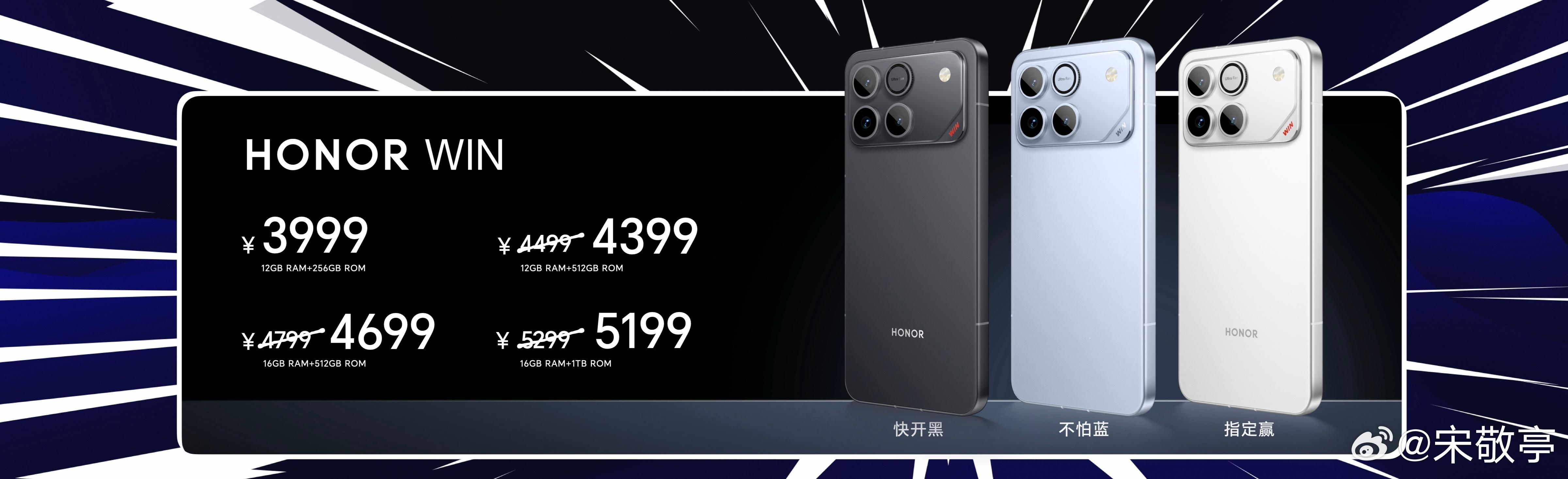 荣耀WIN系列3款配色发布后已全面开售,价格方面:荣耀WIN RT 12GB+256GB、16GB+256GB、12GB+512GB、16GB+512GB、16GB+1TB版本售价分别为2699元、2999元、3099元、3399元和3999元;荣耀WIN 12GB+256GB、12GB+512GB和16GB+512GB、16GB+1TB版本售价分别为3999元、4499元、4799元和5299元。 这确实非常香啊,大家心动了吗?荣耀WIN荣耀WIN价格年度夯机荣耀WIN价格真香