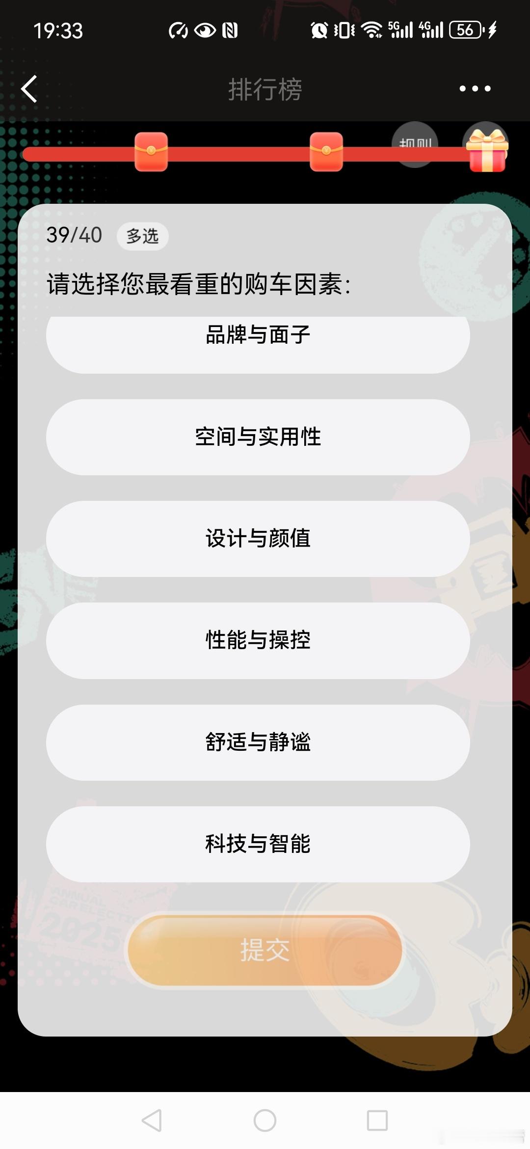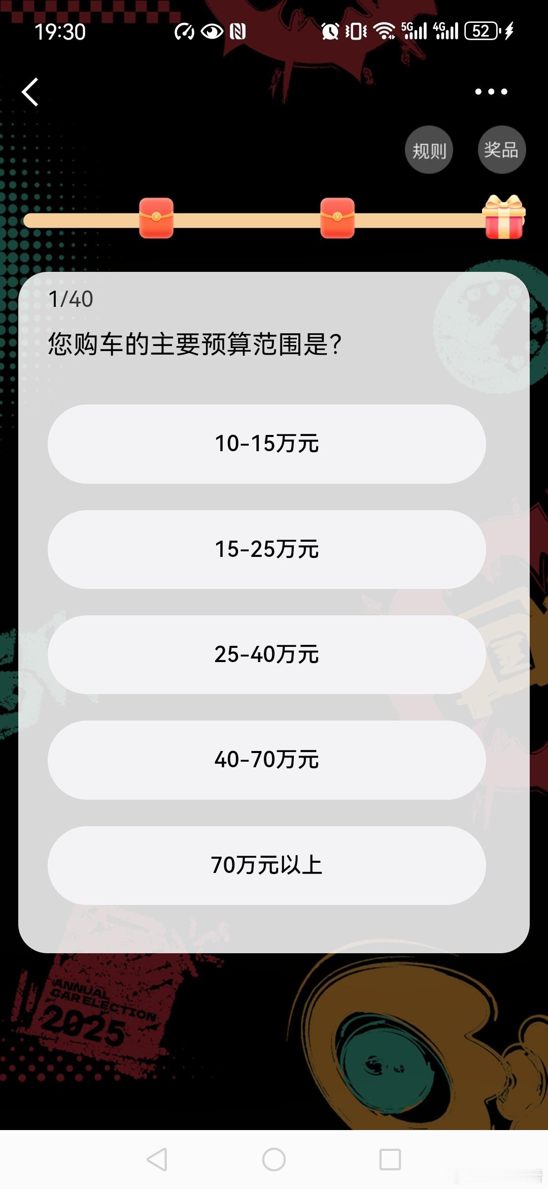 2025哪款新车适合我 选车模拟器挺不错的,我测试后,答题过程中抽取了0.6元的现金红包,目前我还没买车,但为我推荐了领克10EM一P等三款车,我觉得都挺符合我的,会成为我2025年和2026年的梦想车。 领克10 EM-P是中大型插电混动轿车,具有一是外观设计个性,我性格就是喜欢个性,造型科幻独特,溜背式车身搭配无框车门、隐藏式门把手和电动升降尾翼,运动感十足。车身颜色多样,可以选择, 二是动力强劲性能好,搭载1.5T发动机+三电机(P1+P3+P4)组成的插电混动系统。续航无焦虑,节能,燃油经济性。三是智能科技,配置全系标配激光雷达和英伟达Thor芯片,支持千里浩瀚智能辅助驾驶H7方案。四是内不错,舒适安全,