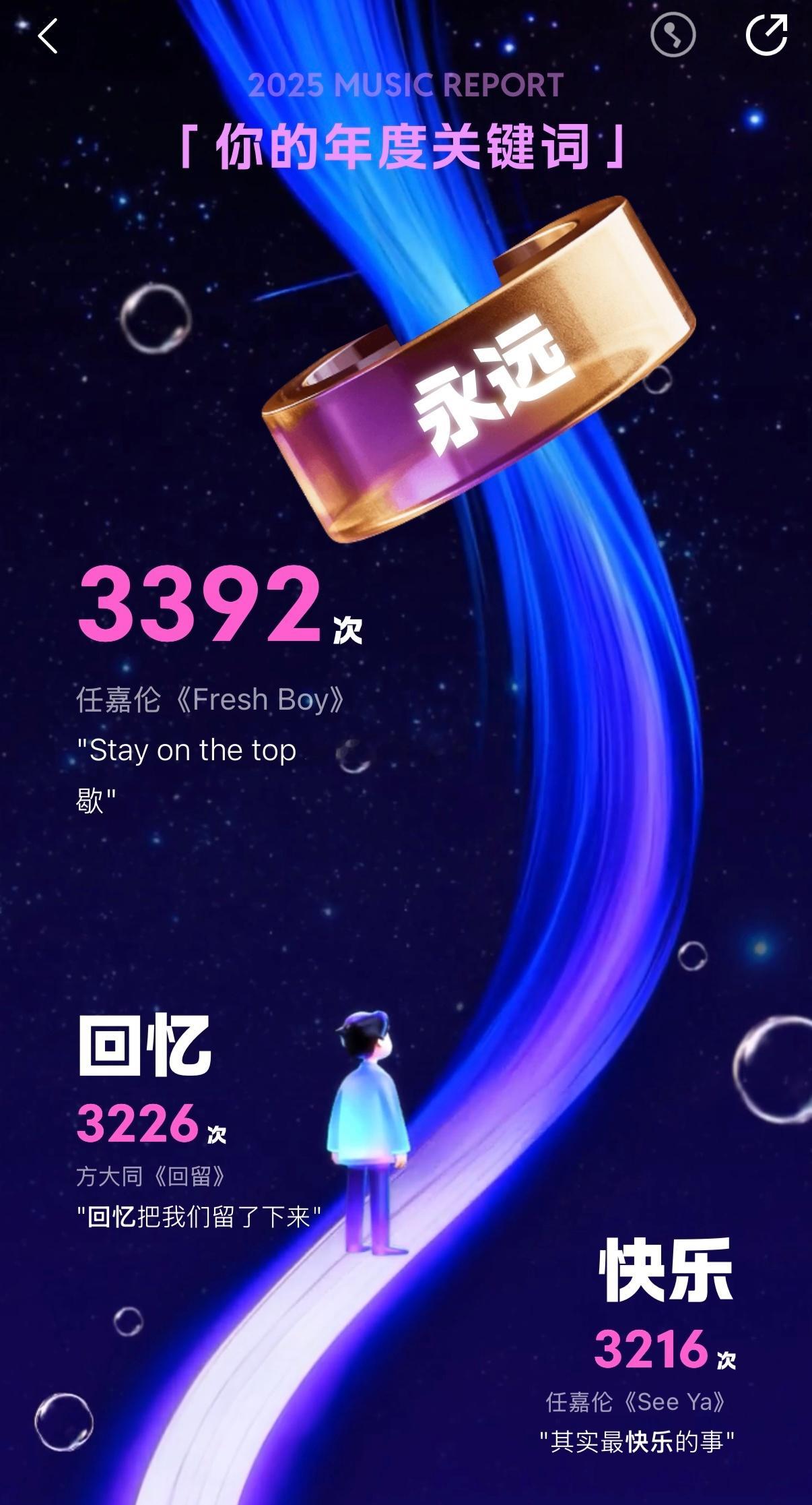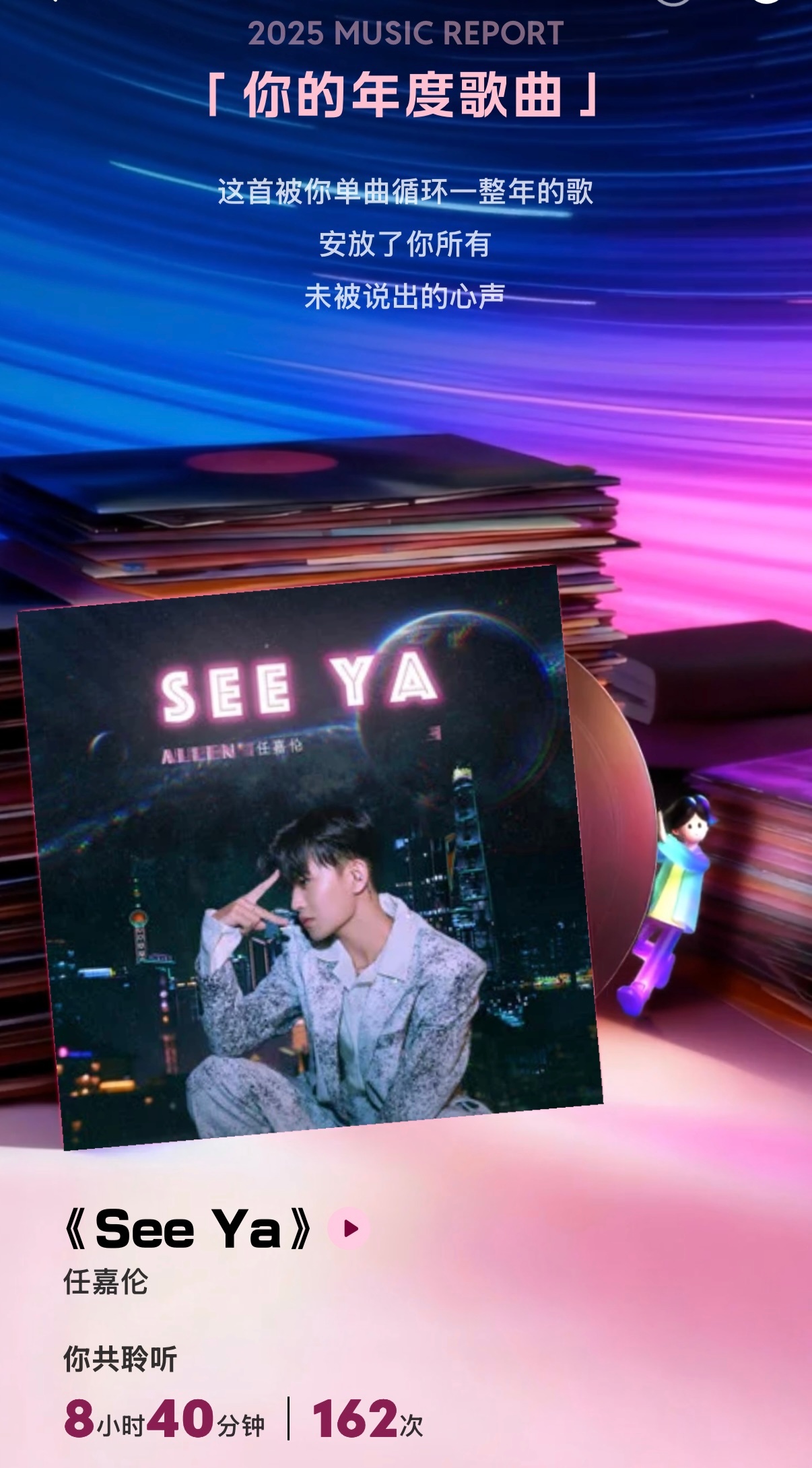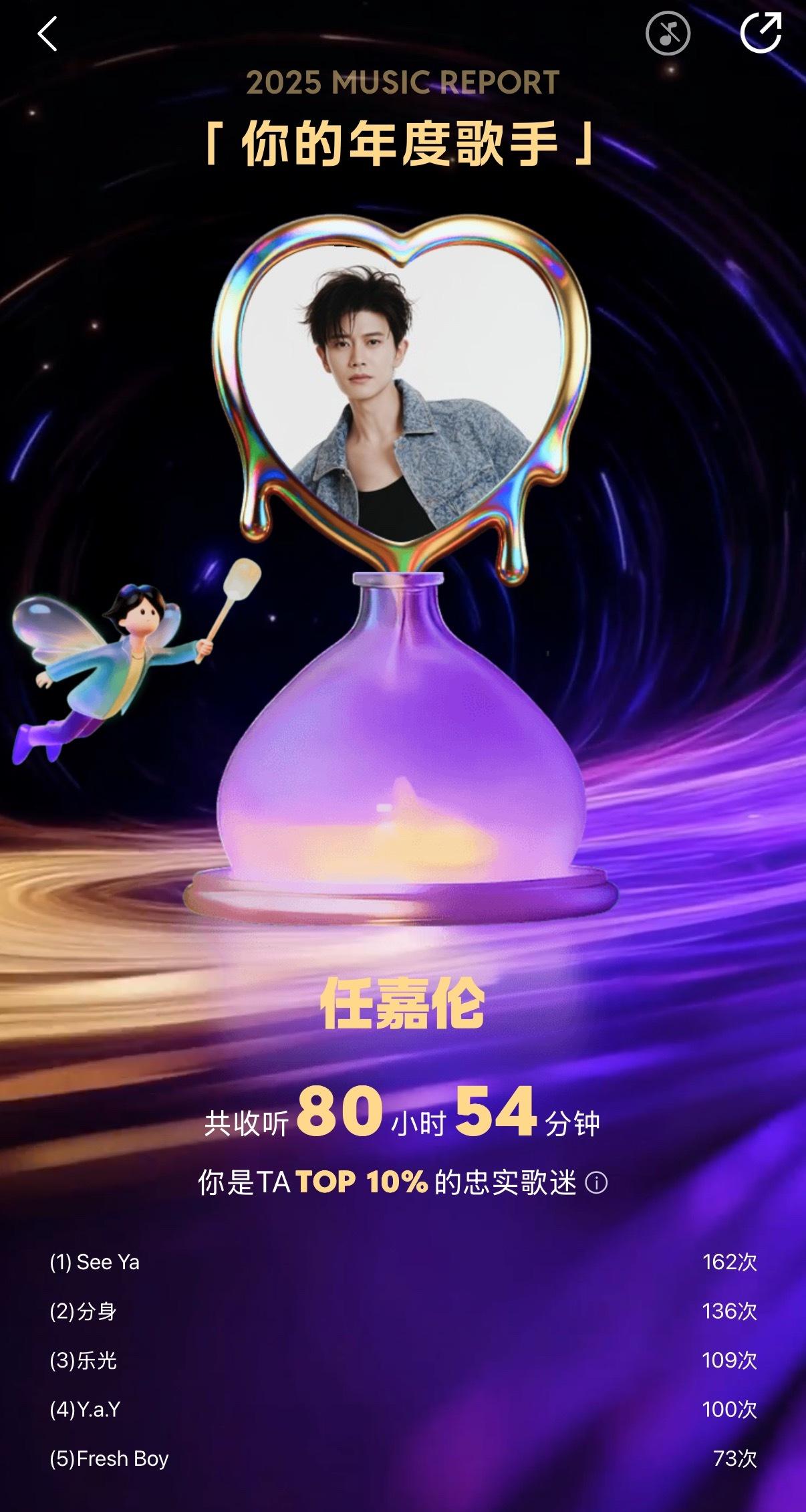 任嘉伦QQ音乐年度听歌报告任嘉伦 我的年度歌手:任嘉伦;年度歌曲《See Ya》