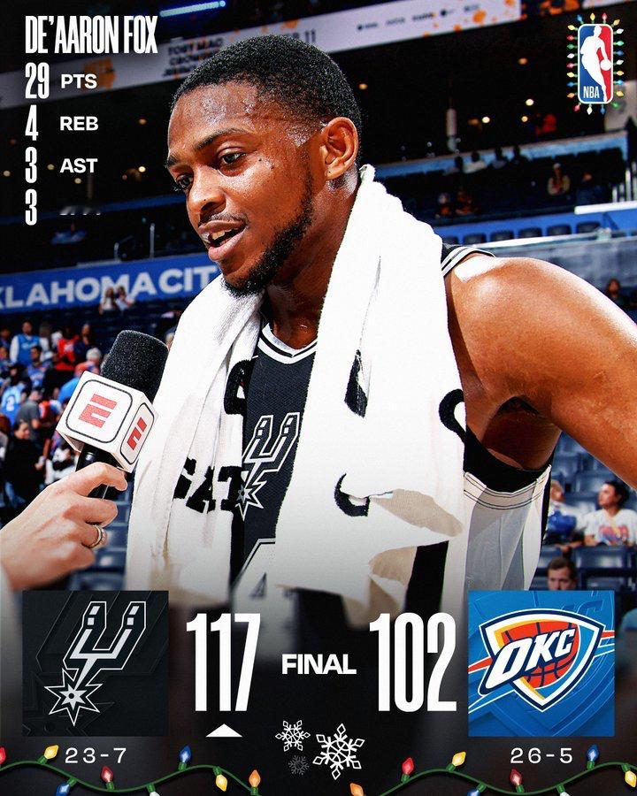 NBA圣诞大战马刺三杀雷霆任嘉伦预测nba总冠军 马刺13天三杀雷霆,这就是真克星了!马刺拿下常规赛8连胜,雷霆26胜5负,其中3场是输给了马刺,且最近两场输15分+