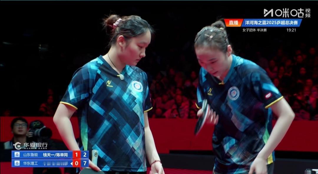 山东鲁能双打3:2胜,卫冕冠军之路第一步! 2025乒超联赛总决赛,第二场女团半决赛。 山东鲁能Vs华东理工大学 山东鲁能力争卫冕冠军,拥有王曼昱、陈幸同、钱天一三大主力! 第一盘双打 陈幸同/钱天一3:2(11-9;9-11;11-13;11-9;11-8)胜华东理工王晓彤/李雅可。 华东理工双打挑战同钱组合失败,这样就兇多吉少了。 单打世界排名第二的王曼昱拿两分是大概率事件! 第二盘 王曼昱Vs华东理工王艺迪 第三盘 陈幸同Vs华东理工王晓彤 第四盘 王曼昱Vs华东理工李雅可