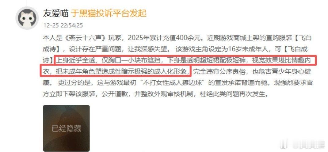 燕云十六声被指低俗情趣内衣第一次听说这款游戏,看了新闻报道才发现这游戏的服装设计,确实有点低俗,建议好好整改一下,别把年轻人给教坏了!科技先锋官