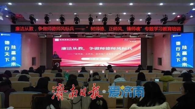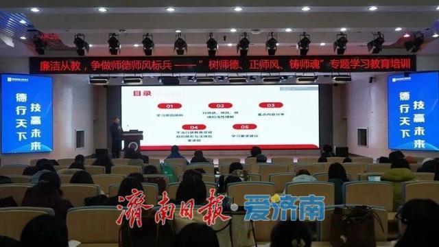 为深入落实济南市教育局关于师德师风建设的系列工作要求,推动教师队伍师德素养提质增效,日前,济南信息工程学校组织全体教职工开展“树师德、正师风、铸师魂”专题培训。学校领导班子成员及全体教职工参加培训,以扎实举措筑牢育人根基,凝聚教育正能量。