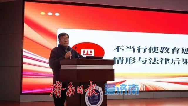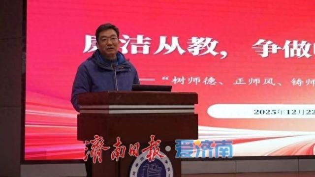 培训伊始,学校党委书记徐德亮传达了济南市教育局近年来关于师德师风建设的系列重要部署。他表示,学校前期已组织全体教职工完成了师德师风建设政策文件汇编的自学工作,本次专题培训是在此基础上的系统性梳理与深化巩固。徐德亮强调,学校后续将制定师德师风建设三年行动计划,推动师德师风建设入脑入心、落地见效。