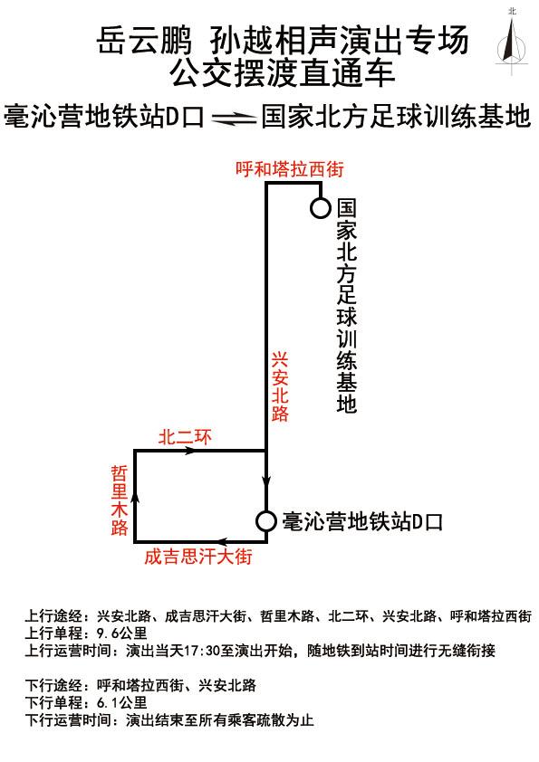 开通“毫沁营地铁站D口—国家北方足球训练基地”相声专场演出公交摆渡直通车。