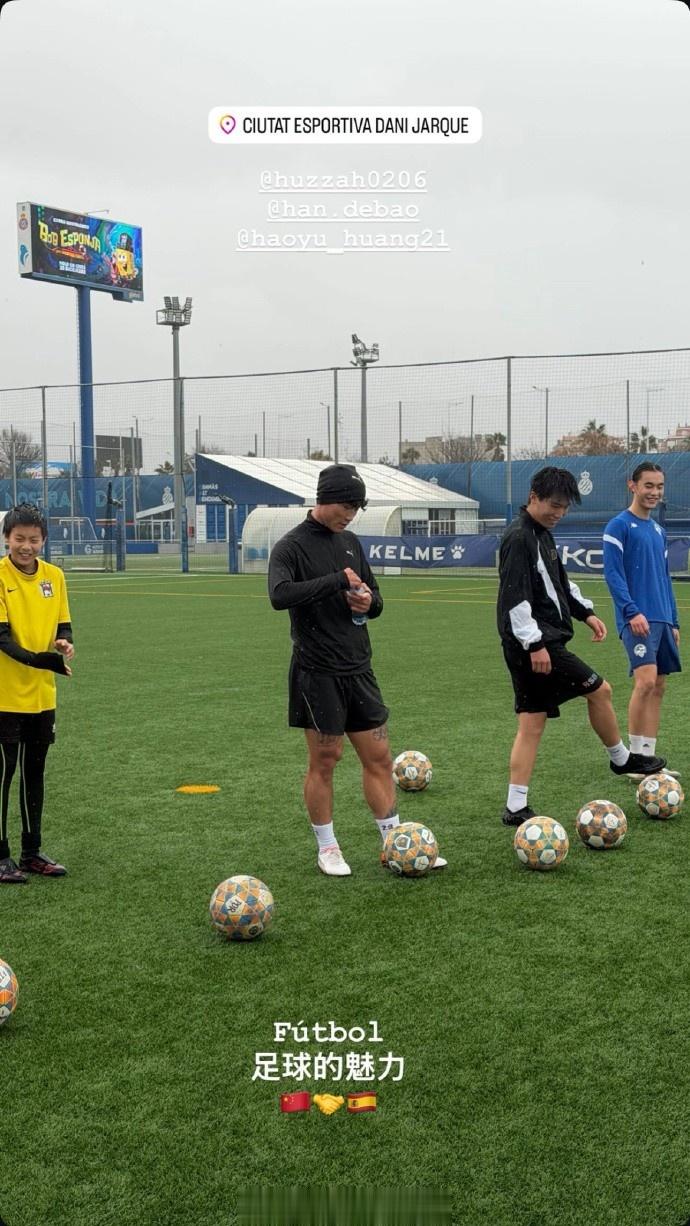 国脚谢文能现身西班牙人训练基地,韩德宝等小将一同参与训练