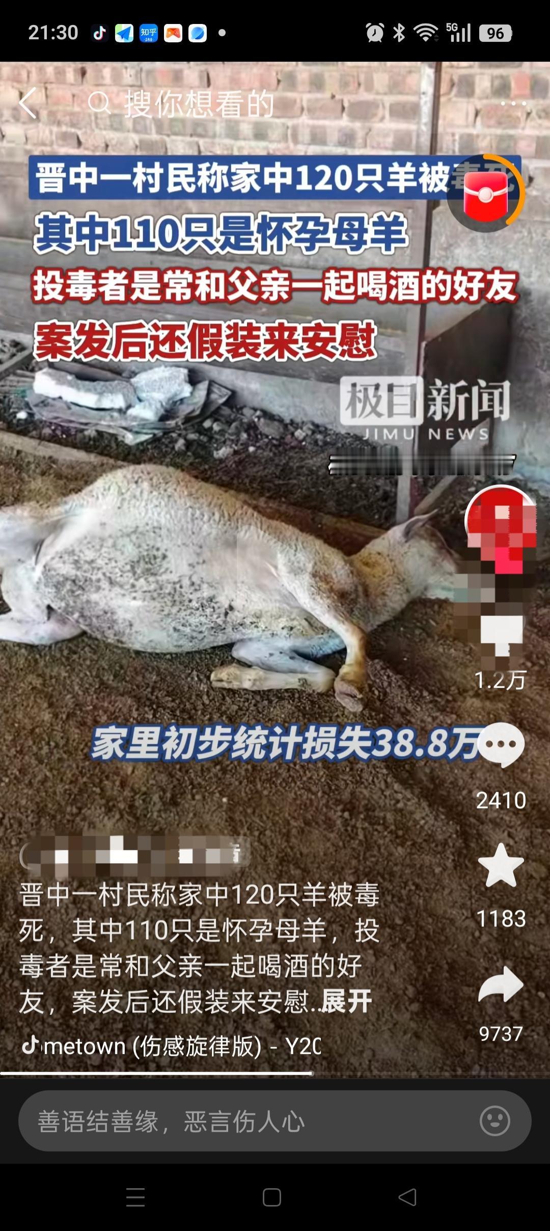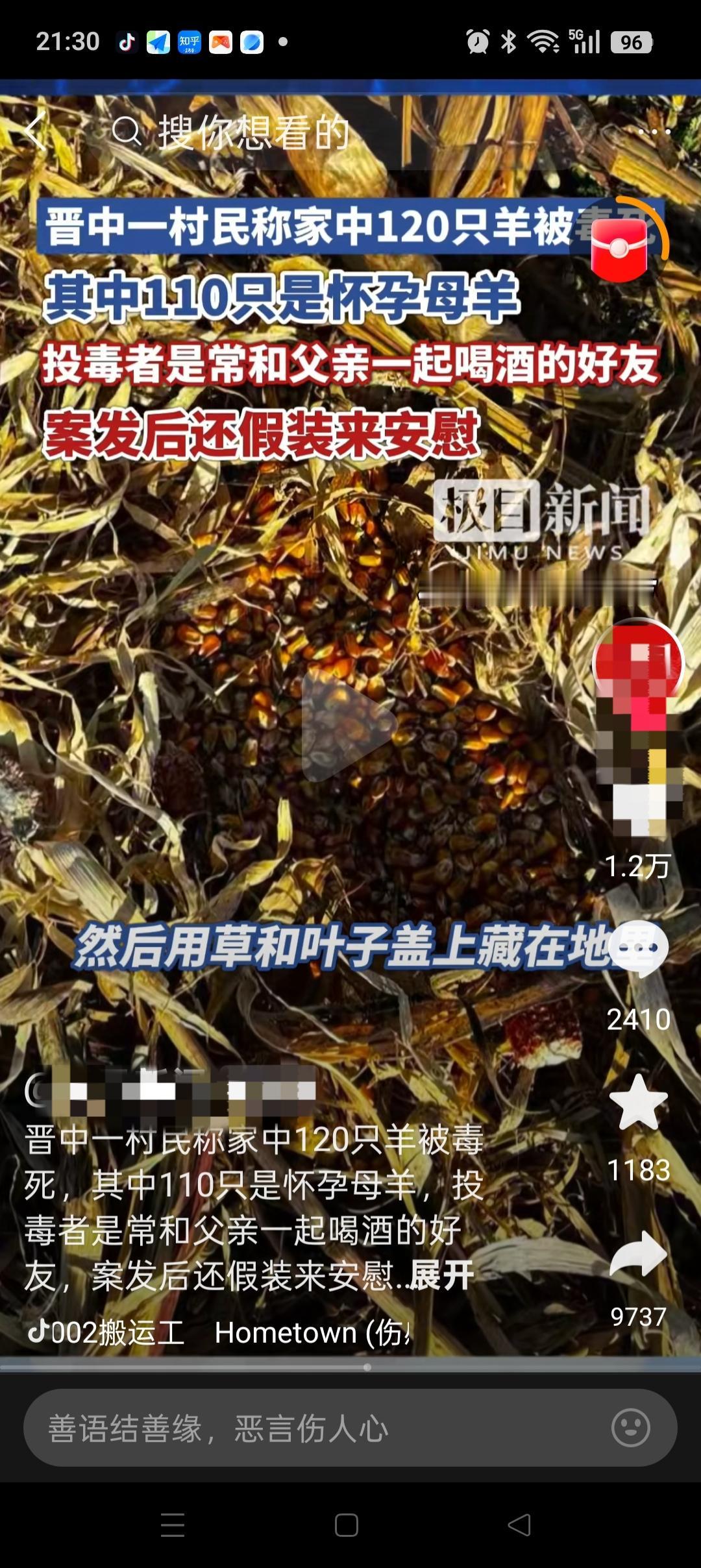 “这人得多坏啊”,山西晋中,一村民家120只羊被毒死,110只还是怀孕的母羊,损失高达38.8万。更没想到的是,下毒的居然是平常经常和爸爸一起喝酒的武某。 事情发生后,他还特意跑来安慰爸爸妈妈,说到底是谁会这么坏!但仅仅第二天,他就被帽子叔叔发现,给抓住了。 原来武某是把玉米粒拌上Du药,在用草和叶子盖上藏在地里的。据赵女士透露:武某和父亲关系非常好,只是最近吵过一次架,想不通他为啥会这么做。 但是也提到了一点,就是她平常放羊都是在地里,这片地大家都有份,不过地里现在没有种玉米,空着的。 做养殖真难,怕的就是被人惦记着偷毒。而且就算你平常做人再小心,也会有人见不得你好。。