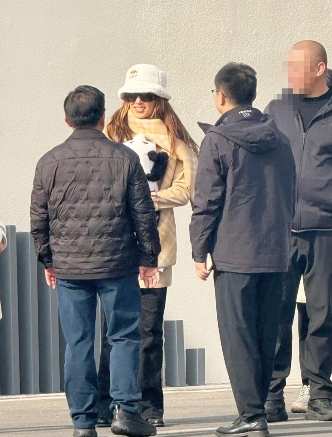 这两天,谷爱凌去四川了,主要是去参观成都大熊猫繁育基地去了,很可爱。 谷爱凌穿着黑色皮鞋、黑色裤子、黄色大衣,戴着黄色围脖、墨镜和白色毛绒绒的帽子,看着都很暖和,拿着白色包,打扮的很时尚,站在台阶上还拍照啦。 谷爱凌还收到了一份熊猫玩偶礼物,抱在怀里特别开心。