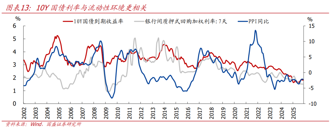 >通胀因素仅是影响10Y国债利率的变量之一,增长预期和流动性环境更为关键。用R007代表银行间市场的流动性松紧程度,可以发现2010年以来10Y国债利率与流动性更相关,只有需求确定性改善、PPI大幅转正并引致通胀预期和流动性收紧风险时,债市才会进入调整;当流动性偏宽松、需求改善缺乏持续性、通胀预期未扩散至终端消费时,即便PPI阶段性回升,10Y国债收益率也难有趋势性上行动力。