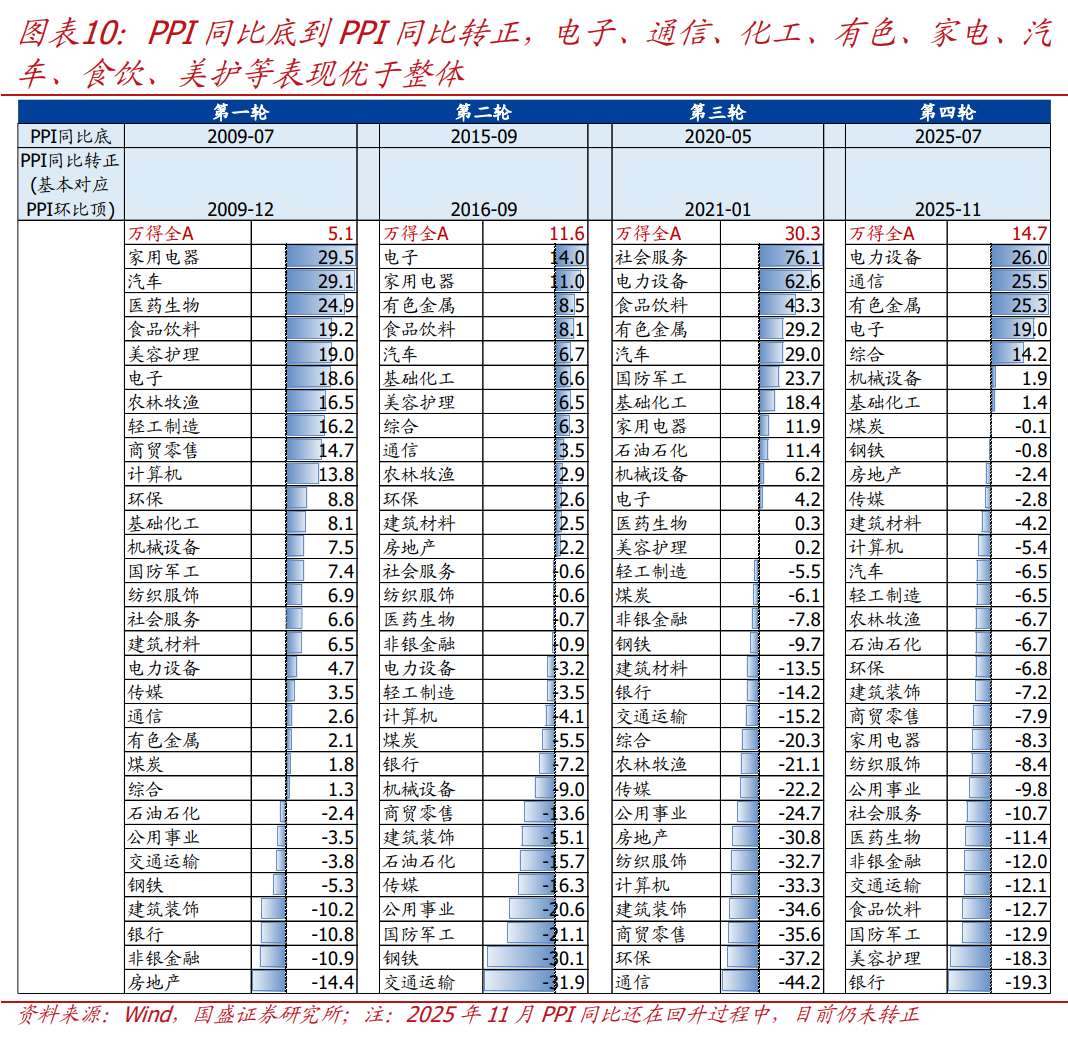 本文节选自国盛证券研究所已于2025年12月26日发布的报告《全面复盘:史上5轮PPI回升的股债表现》,具体内容请详见相关报告。