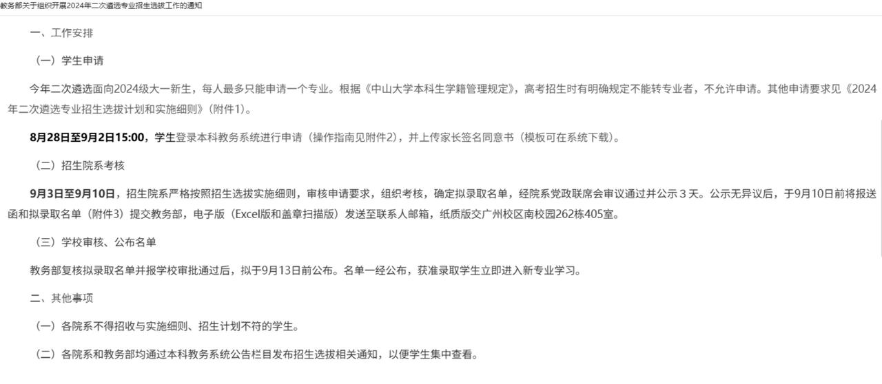 这所大学的二次遴选,提醒同学们看清专业后再报名,否则刚从“天坑”跳出又要跳入“火坑”。 一般来讲,二次遴选是新生申请转专业的很好机会,因为绝大多数院校会拿出一些优质的班型或专业来进行选拔,比如西安交通大学的钱学森班、东南大学的吴健雄班等等,在通过选拔测试后,新生可直接转入新专业学习,相当于一入校就实现了转专业。 但是,也有少数院校会反其道而行之,二次选拔拿出的并不是好专业,却是不容易招到生的“火坑”专业。中山大学就是如此,近些年进行二次遴选的专业就很不理想,2025年遴选专业中包括信息管理与信息系统、这个近些年被裁最多的专业,被大家认为学不到东西的工商管理类专业,以及考生很少会选择的护理学和化学工程与工艺等专业。 这样的二次遴选,对于刚进校的新生来讲,无异于刚跳出“天坑”,又跳入到“火坑”,不知院方设置这样的二次遴选还有什么意义?如果是你,会报名参加二次遴选吗?