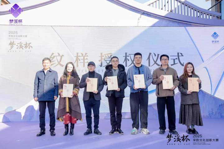 12月26日下午,2025“梦溪杯”宋韵文化创新大赛颁奖典礼在凤凰里举办,上城区发布了宋韵纹样3.0版,并授权给多家企业免费使用。