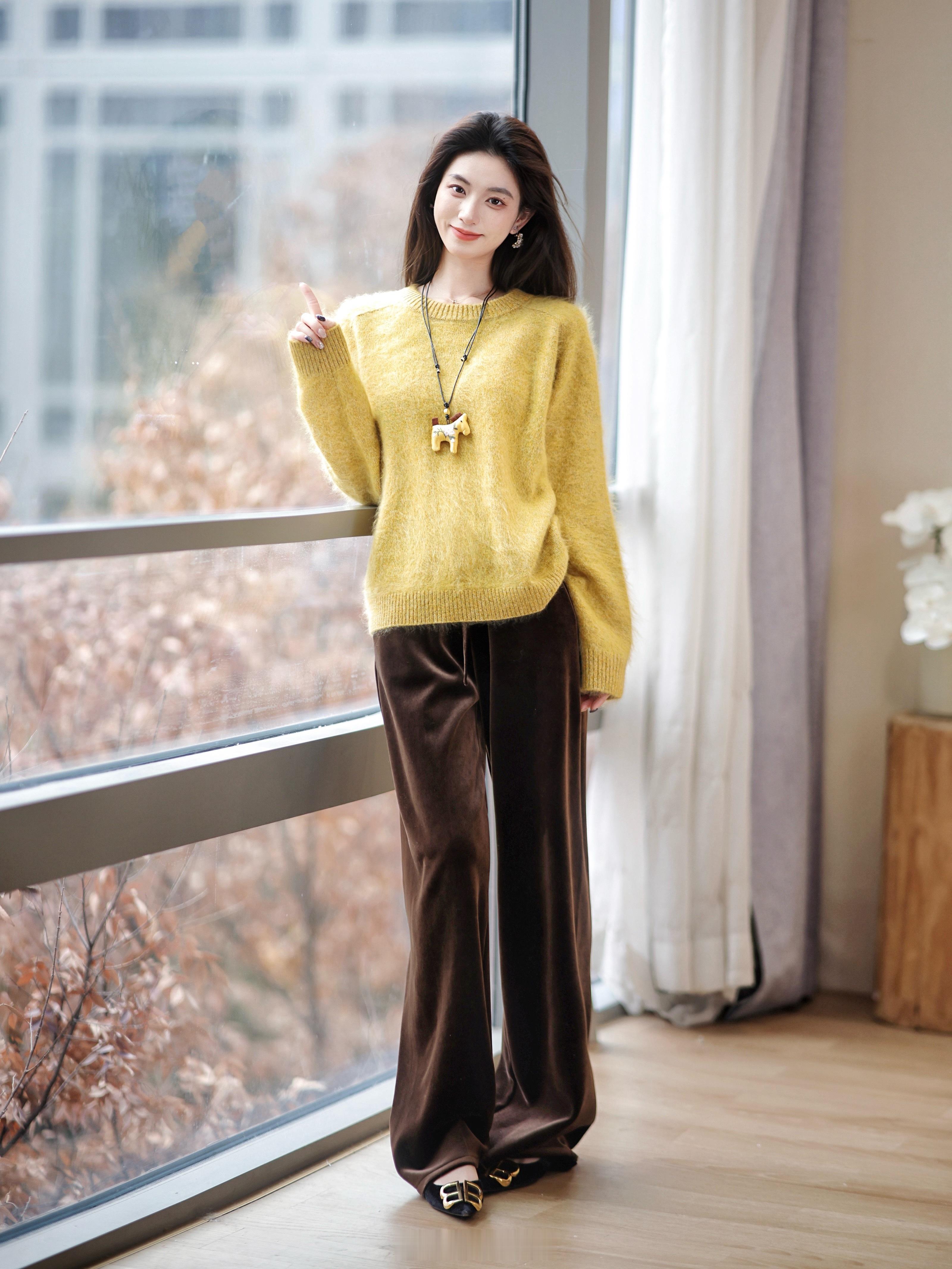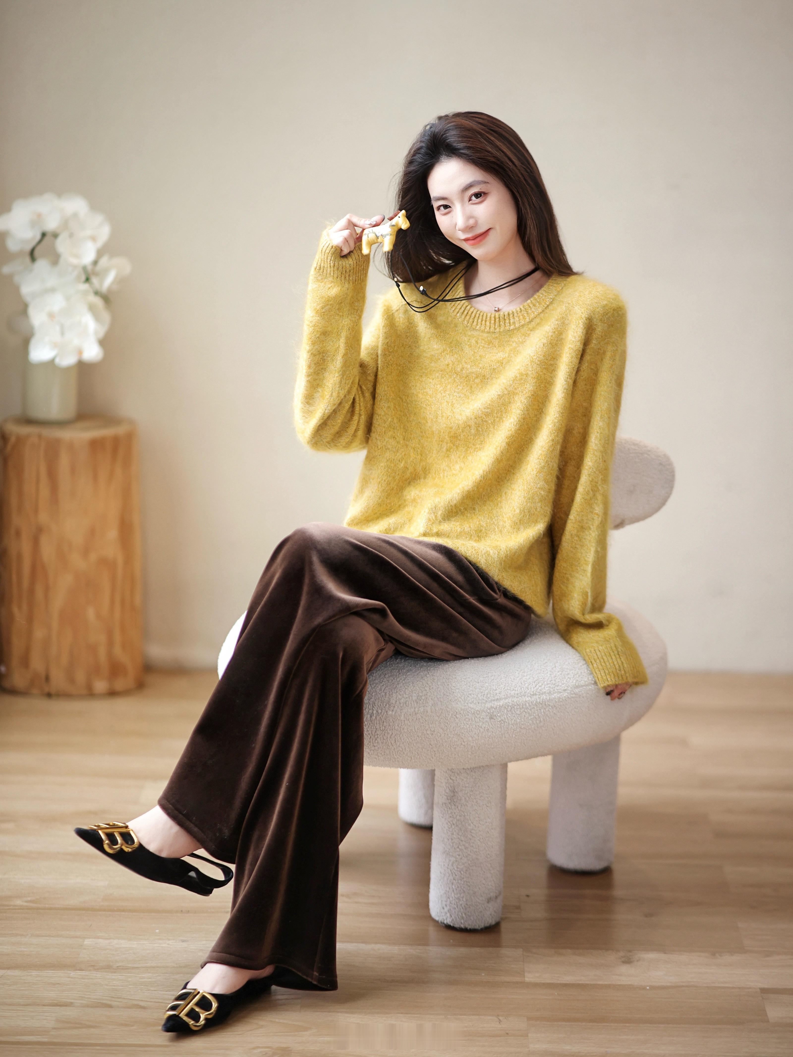 绒绒暖暖的拉毛羊绒谁能不爱啊☀️~高克重AB纱 有点微花纱的感觉 好看不单调!还超级厚实哦!