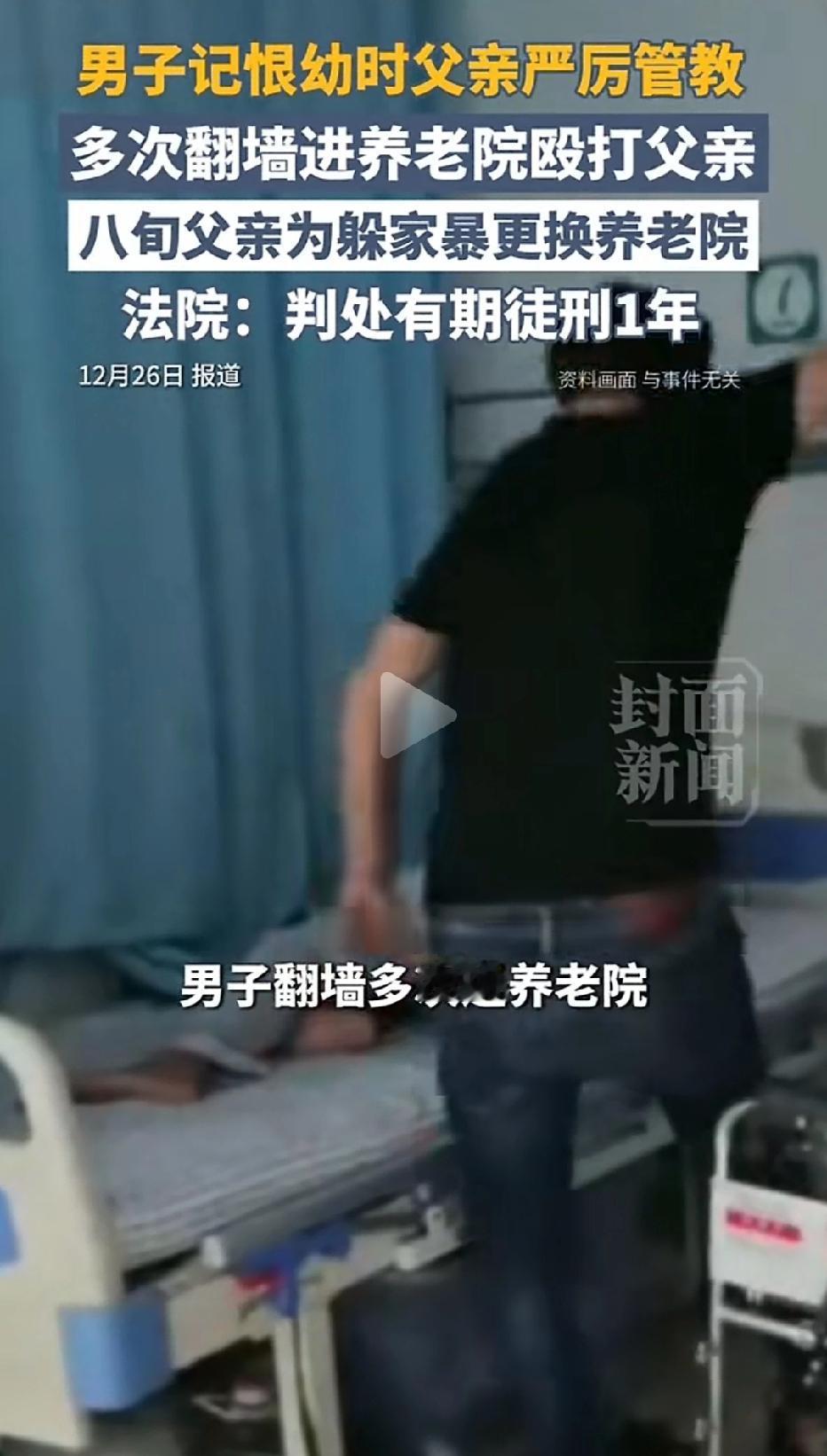 山西,男子从小受到父亲严厉管教,心理一直有阴影,长大后,男子记恨父亲,多次对父亲殴打。姐姐将父亲送到养老院避难, 谁知,男子多次翻墙到养老院打父亲,姐姐无奈,又将父亲转移到另一家养老院。男子最后被起诉,结局大快人心! 男子侯某某被警察带走时,脸上没有丝毫悔意。 谁能想到,这个接连翻墙闯进两家养老院殴打亲爹的男人,竟源于小时候父亲一次又一次的严厉打骂。 侯某某的童年,几乎是在父亲的棍棒下度过的。 父亲管教方式简单粗暴,只要他稍有不听话,或是学习成绩达不到要求。 迎来的从来不是耐心教导,而是劈头盖脸的训斥和毫不留情的打骂。 这些拳脚和斥责,没有让侯某某变得乖巧懂事,反而在他心里埋下了怨恨的种子,成了挥之不去的阴影。 长大后,侯某某彻底挣脱了父亲的管束,可儿时的委屈和愤怒却一点没消散,反而越积越深。 他把自己人生里的不顺遂,全都归咎于父亲当年的打骂。 不仅对年迈的父亲不闻不问,还动辄就对父亲拳打脚踢,把积攒多年的怨气全都发泄出来。 姐姐看着老父亲被打得浑身是伤,心疼又无助,只能先把父亲送进养老院。 她以为,隔着养老院的大门和围墙,弟弟总该消停,父亲能过上几天安稳日子。 可侯某某的恨意早就冲昏了头脑,他趁着夜深人静,一次次翻墙闯进养老院,不管工作人员怎么拦,都要找到父亲施暴。 无奈之下,姐姐只能连夜联系另一家偏远的养老院,偷偷把父亲转移过去,生怕弟弟再找上门。 可侯某某像疯了一样,四处打听父亲的下落,没过多久就找到了新养老院的地址,又一次翻墙而入,对父亲挥起了拳头。 忍无可忍的姐姐,终于下定决心报警。 警方介入后,迅速查清了侯某某多次虐待父亲的事实,检察机关依法对他提起公诉。 法院审理认为,侯某某的行为已构成虐待罪,多次殴打父亲且追到养老院施暴,情节十分恶劣。 《刑法》第234条规定,故意伤害他人身体的,致人轻伤的,处三年以下有期徒刑、拘役或者管制。侯某某多次殴打年满80岁的父亲,并导致其右腓骨骨折,经鉴定为轻伤二级,其行为已构成故意伤害罪 。 同时,法院考虑到侯某某不履行赡养义务,加上对亲生父亲多次实施殴打,对其予以从重处罚,最终判处其有期徒刑一年。 不管有多大仇,打老人就是违法!养老院都能翻墙进去,这执念也太可怕了,判得一点不冤! 父亲当年简单粗暴的打骂式教育,确实给孩子留下了心理创伤。 可成年后,更该通过沟通、求助等理性方式去化解心结,而不是用暴力报复的方式,让悲剧循环。 最后,赡养老人是每个成年子女的法定义务,这份责任不会因过往的矛盾而消失。 原生家庭的痛需要治愈,而不是用伤害传递伤害。 对此,你怎么看?