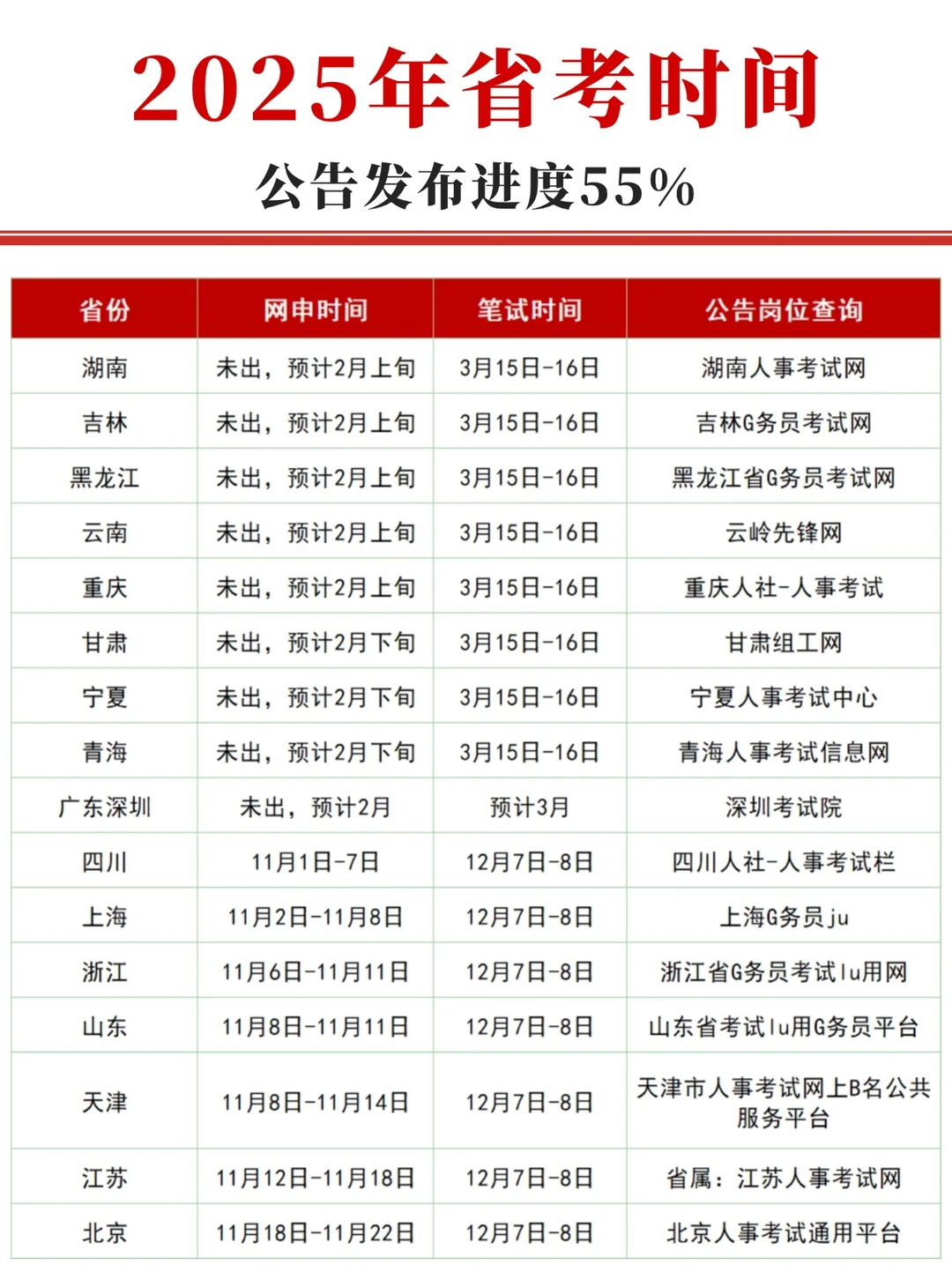 近期内蒙古、新疆、陕西省考公告发布,都是2月中旬或下旬网申,其他省待发布