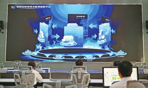 海南省通过整合海关的7.7亿条核心数据,建成了通关信用数据库,对全省300多万家经营主体,实施精准信用分类管理,大幅提升通关便利化水平。图为工作人员操作海南自贸港海关智慧监管平台。新华社