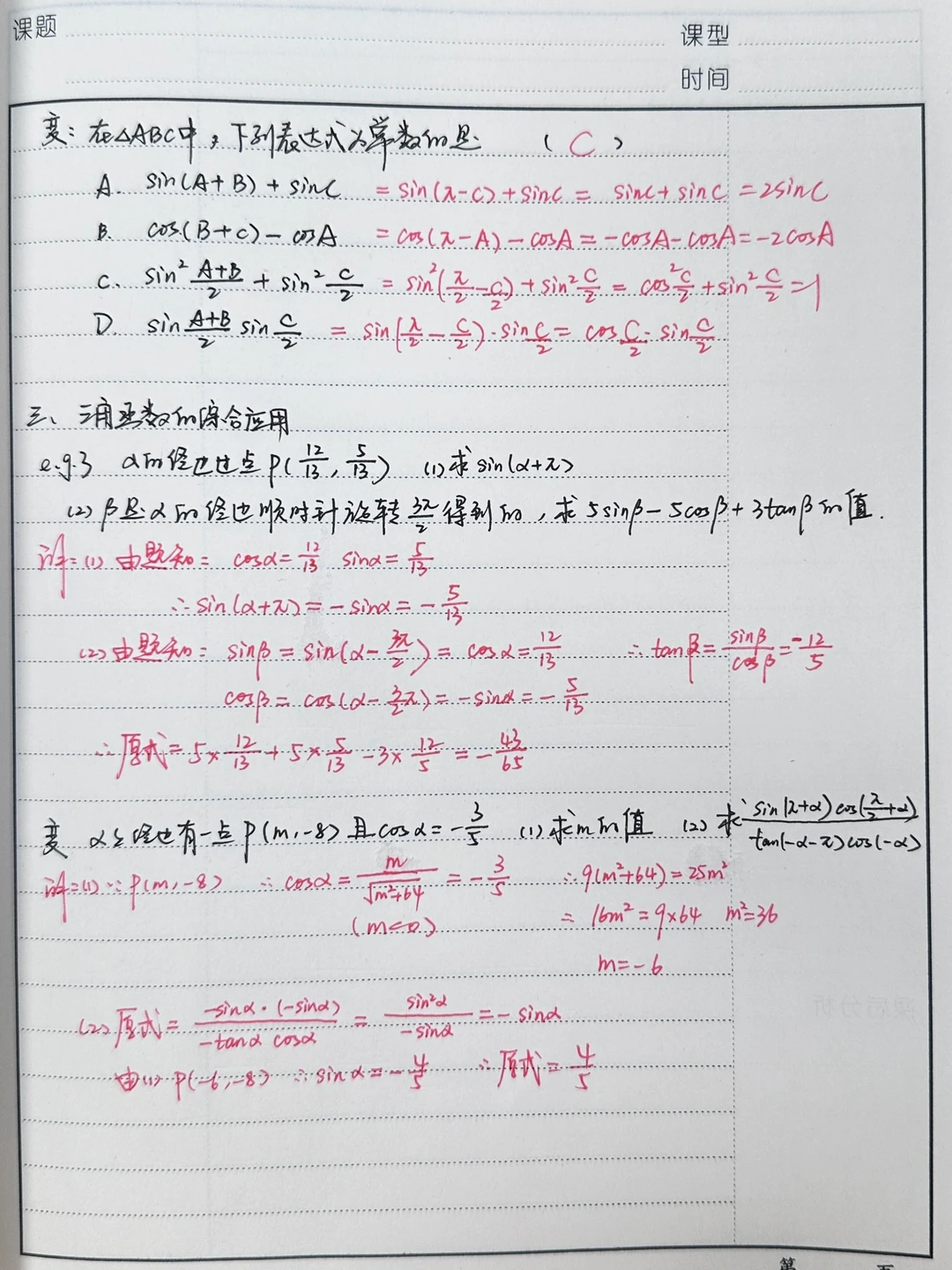 明天准备复习一下诱导公式,这个地方按个暂停键,评讲完作业,再往后讲三角函数的图象与性质。