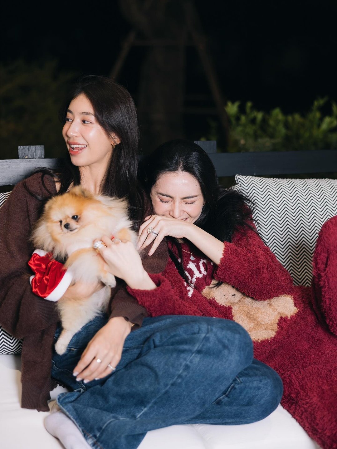 何超欣晒出和妈妈梁安琪、还有嫂子奚梦瑶的圣诞装