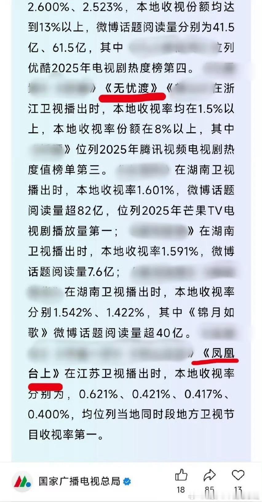 CVB2025年收视报告提到任嘉伦三部剧:风与潮、无忧渡、凤凰台上,其中风与潮播出前9集,收视高达3.009%,收视2.8亿人次!