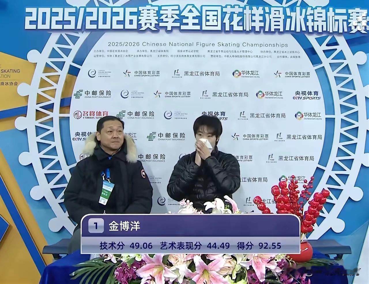 全国花样滑冰锦标赛进行了男单短节目的比拼,金博洋虽然在四周跳落地出现翻身,但整体表现更出色,最终以92.55分暂列第一,小将彭智铭虽然完成了两个四周跳,难度分较高,但内容分过低,最终位列第二,比金博洋少了8.86分,陈昱东位列第三,为中国队拿到米兰冬奥会男单门票的戴大卫仅名列第四,他在两站选拔赛总得分已落后金博洋超过50分,已经无缘冬奥“门票”,今天的自由滑决赛无不出大的闪失,这张门票将归属金博洋。