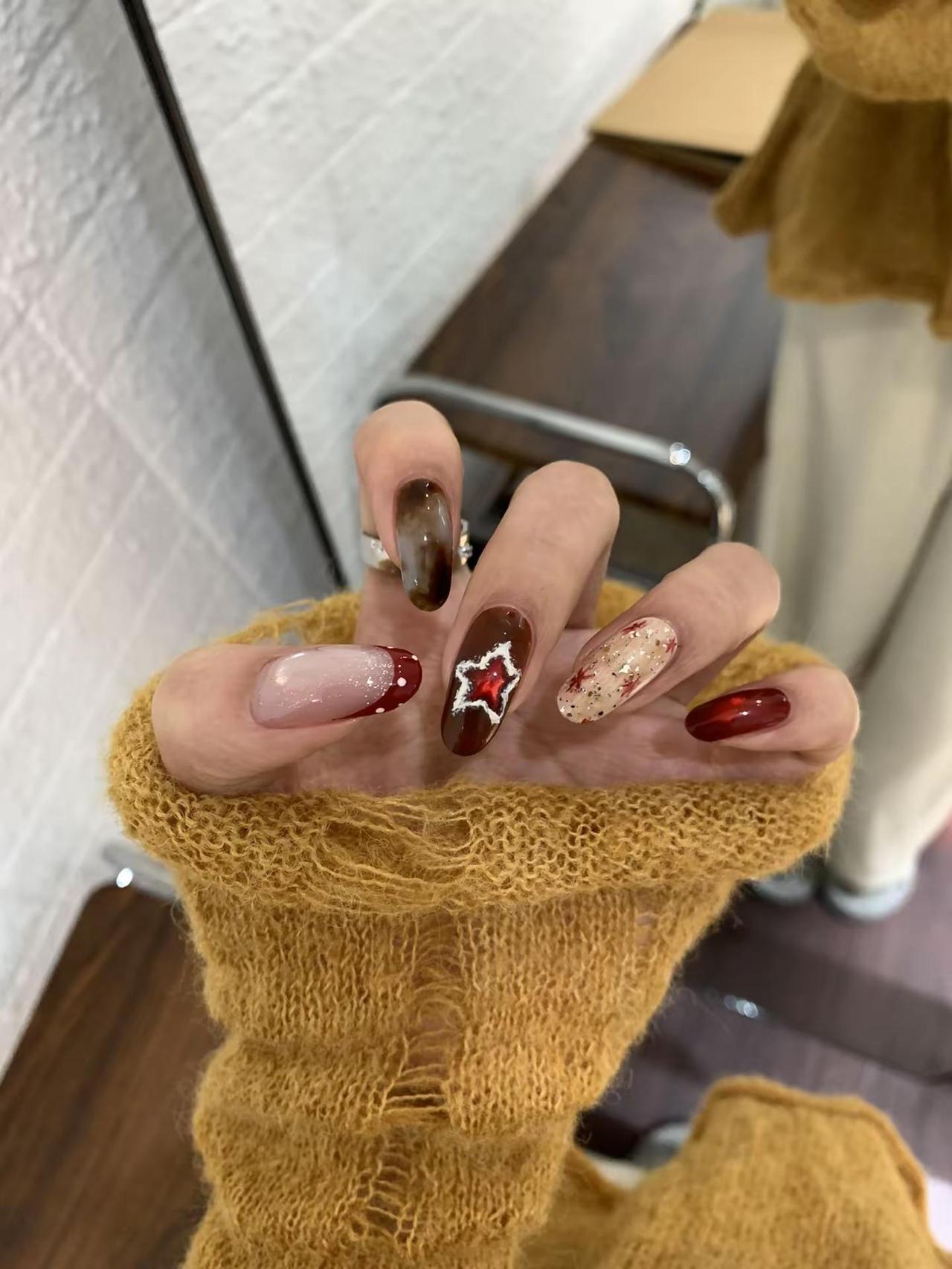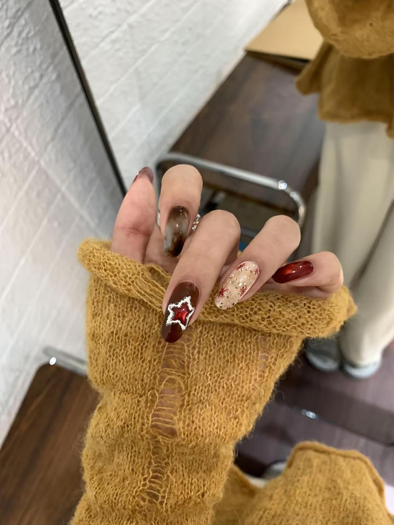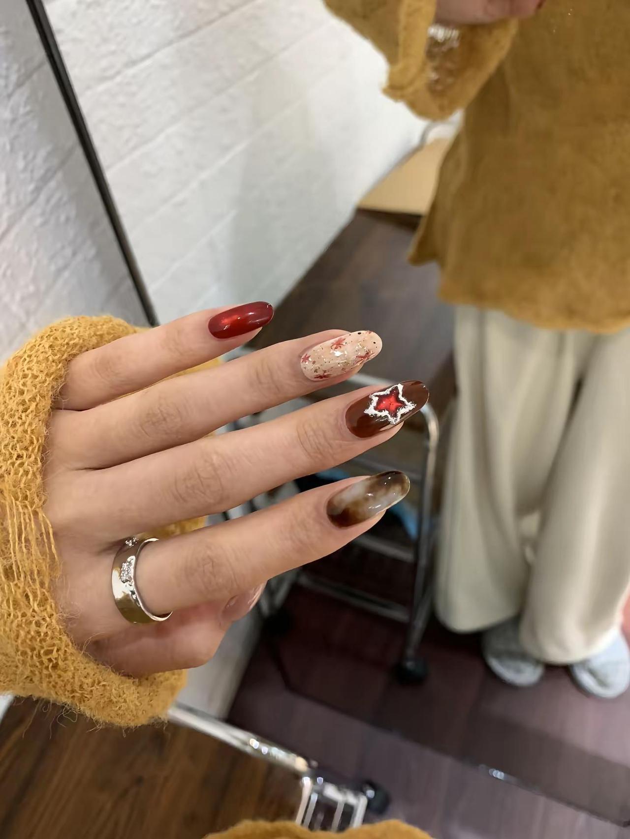 ❤️🔥🍁🌟复古红星。美甲 新年美甲 秋冬美甲 红色美甲