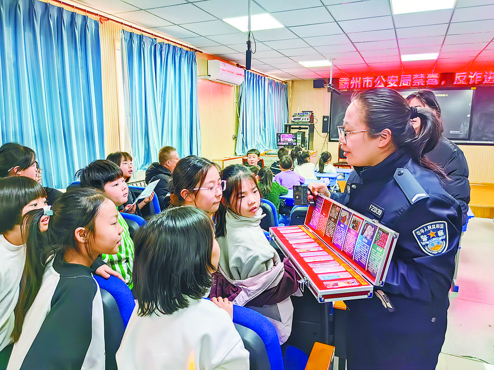 反诈民警聚焦电话手表诈骗、游戏免费皮肤诈骗等高发场景,通过播放《小学生防骗动画短片》《反诈小课堂》等趣味视频,搭配互动问答,生动拆解诈骗套路,让学生牢记“陌生链接不要点”“不听不信不转账”防骗口诀。
