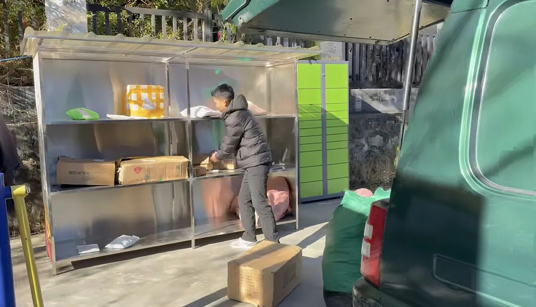 格林村村头的快递架,村民自取快递。消费者供图
