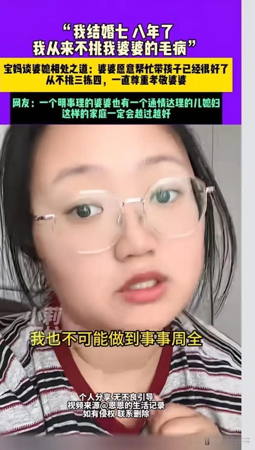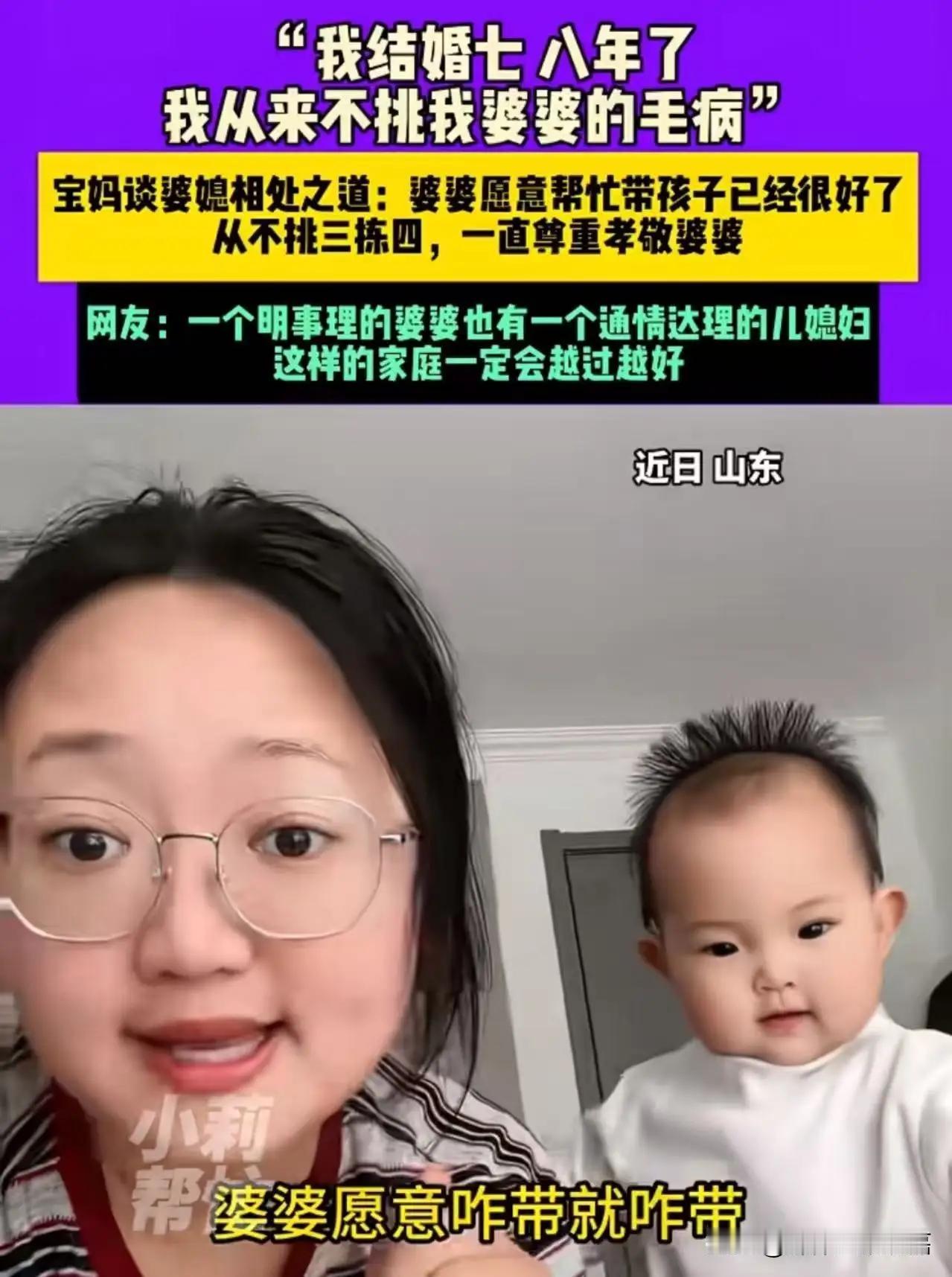 “这儿媳妇简直就是人间清醒的典范!”女子谈婆媳相处之道:“我结婚七八年了,我从来不挑我婆婆的毛病,婆婆愿意帮忙带孩子已经很好了,从不挑三拣四!”网友:一个明事理的婆婆也有一个通情达理的儿媳妇,这样的家庭一定会越过越好。 这位宝妈说:“婆婆帮我带孩子的时候,她想怎么带就怎么带。就算带得不是那么完美,我也不会说一句不是。毕竟,就算让我自己来带,我也没办法做到事事都周全、处处都妥帖。有人愿意搭把手,帮我分担这份带娃的辛苦,这已经是很幸运的事儿了。再说了,哪有奶奶不疼自己孙子孙女的呀?婆婆有时候会唠叨几句,我就当作耳边风,左耳朵进右耳朵出。想想结婚之前,我自己亲妈还时不时地唠叨我呢,婆婆其实也和亲妈一样,都是出于关心。我就笑着回应她,没啥大不了的。结婚这么多年了,我一直都尊重婆婆、孝敬婆婆。就算婆婆有些地方做得不太合我心意,但再怎么说,她也是一家人,总比外人强多了。在我们家,几乎不存在什么婆媳矛盾,一家人相处得和和美美。” 这位宝妈的坦然与宽容,仿佛为我们打开了一扇温暖的窗,让人不禁深思:家庭的和谐,究竟靠的是什么?是计较与抱怨,还是理解与包容?在这个快节奏、压力山大的时代,能拥有这样一份平和的心态,实在难能可贵。 她的话语中透露出一种成熟的智慧:既不盲目迎合,也不一味指责,而是用一颗理解的心去看待家人的一切“不同”。她明白,婆婆的唠叨其实是关心的表达,就像自己小时候被母亲唠叨一样。这种换位思考,让家庭的每一个成员都能感受到温暖和被尊重。 更令人动容的是,她没有因为婆婆的“不完美”而怨天尤人,而是选择了宽容和感恩。她懂得,家庭的幸福不是建立在苛责和指责上,而是源自于每个人的付出和理解。她用行动告诉我们:在家庭关系中,尊重和包容远比争执和抱怨更能筑起坚固的桥梁。 这也让我们反思:在现实生活中,多少家庭因为一点小摩擦就开始激烈争执?又有多少人因为不能理解对方的难处,而陷入无休止的矛盾?其实,幸福的家庭,往往是那些懂得“退一步海阔天空”的人。我们每个人都可以成为那个“人间清醒”的人,用一颗宽容的心去看待家人,用一份理解去化解矛盾。 当然,这样的家庭也不是天生就完美无瑕,而是靠着每个人的努力和智慧一点点堆砌出来的。正如这位宝妈所说:“有人愿意搭把手,帮我分担,这已经是很幸运的事。”其实,幸福家庭的秘密很简单——那就是感恩、包容和付出。 所以,朋友们,你是不是也在反思自己在家庭中的角色?是否也能像她一样,用一颗平和的心去面对每一次冲突,用一份善意去化解每一次误会?也许,我们都可以成为那个“人间清醒”的人,让家庭成为我们心中最温暖的港湾。因为,家庭的幸福,从来都不是一蹴而就的,而是点点滴滴的用心经营。头号周刊 婆媳相处之道 婆媳共处智慧 婚姻婆媳相处