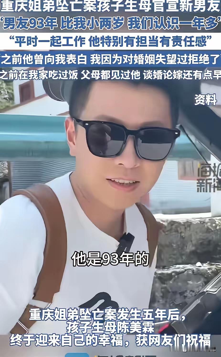 重庆姐弟坠楼案的母亲陈美霖有了新男友,经历了那么大的悲剧,能重新开始,真的不容易。 新男友比她小3岁,主动表白还带她散心,她也说对方性格好、内向腼腆。不过网友看了照片,觉得男方和她前夫长得像,担心她再遇人不淑,纷纷提醒她。 以貌取人确实不妥,毕竟人心才是最重要的。只希望这位妈妈这次是真的遇到了良人,能有人好好陪着她,抚平过去的伤痛,往后的日子能过得安稳些。