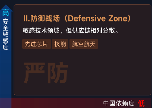 关系到美国国家安全,美国还拥有核心技术,且不完全依赖中国。这是“防御战场”。