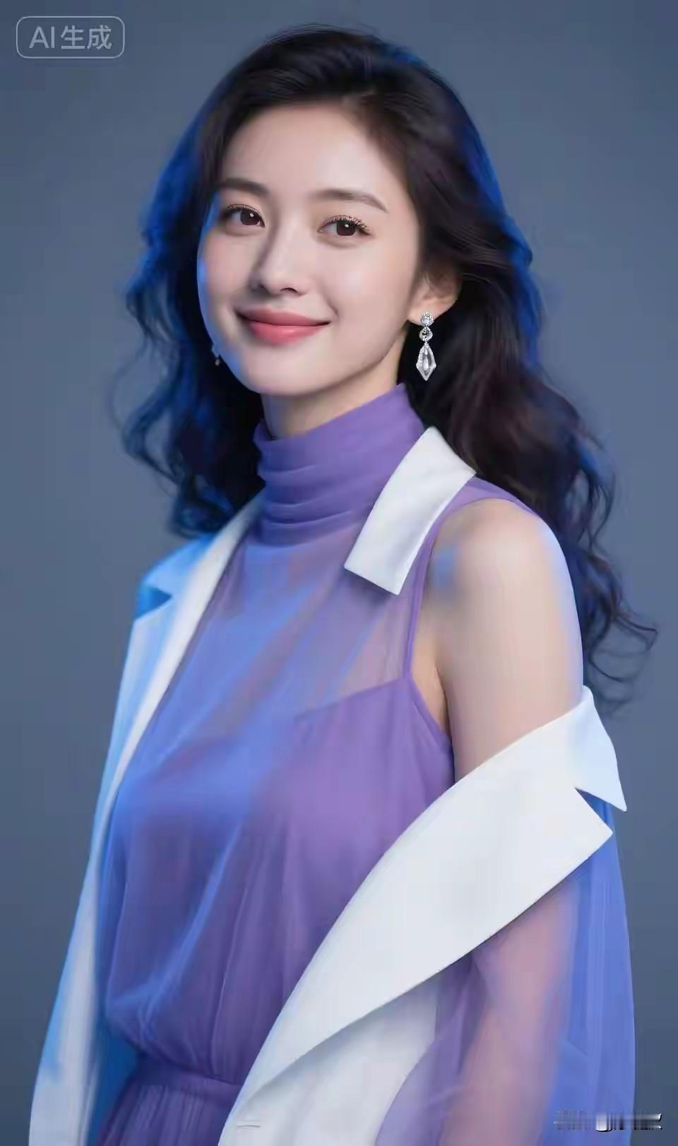 出水芙蓉,闭月羞花 现代美人,紫色高领 露肩纱衣,优雅气质 千娇百媚,一笑倾城。