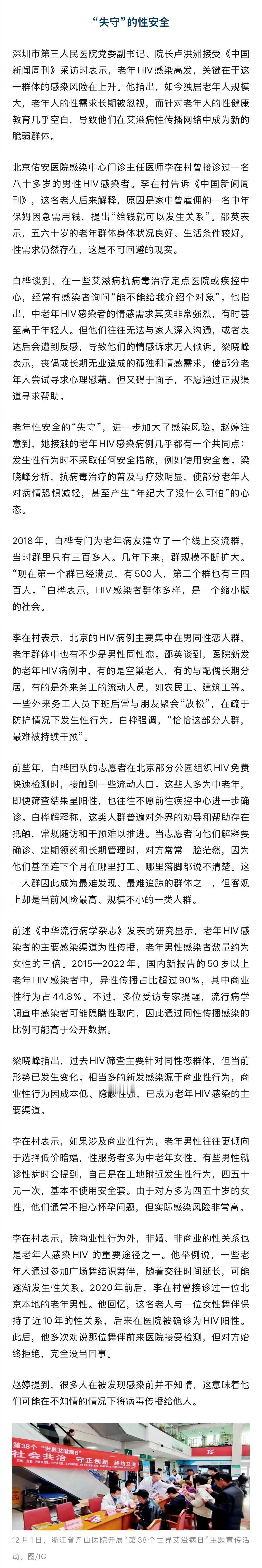 8旬老人与保姆发生性关系感染HIV【老年男性HIV感染者数量约为女性3倍 】这则新闻揭开了老年群体性健康被长期忽视的现实。随着人们生活质量的提高,六、七十岁甚至七、八十岁老人有性需求是正常现象,而这类丧偶或单身的男人就成为问题的核心。他们往往选择年龄比较大、服务价格低的女性,而这些女性因为不担心怀孕而很少使用安全套,这才是感染 HIV 的根源。高龄人群的性需求与防艾意识薄弱形成危险断层,有偿性服务中的无保护行为成为病毒传播的缺口。全网热点共创计划