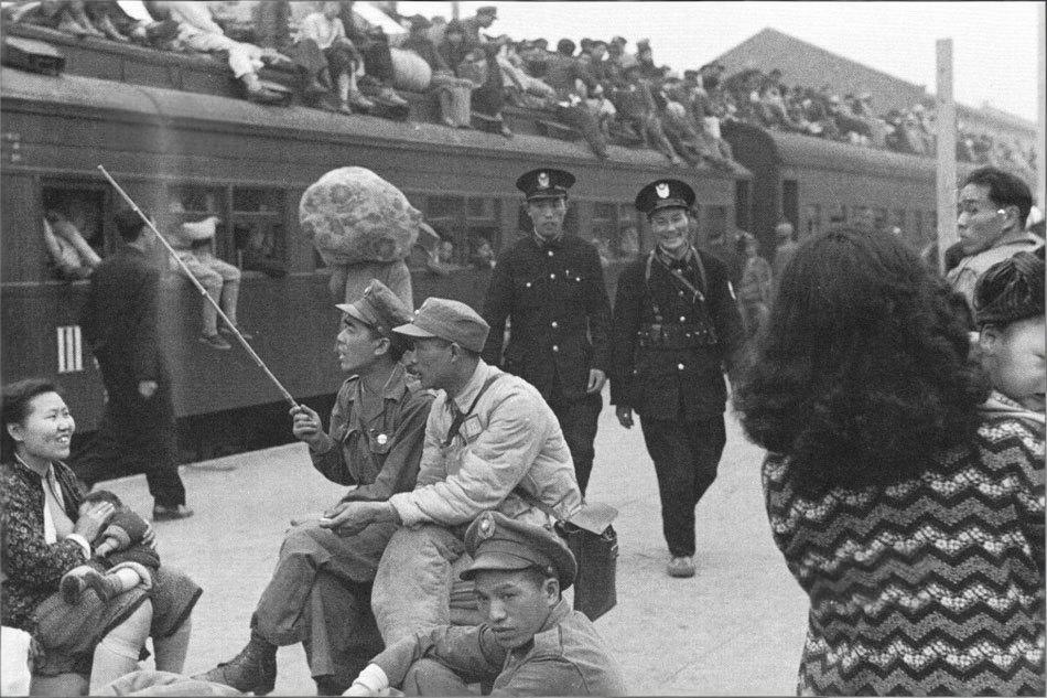 1949年上海解放前夕,上海火车北站乘客搭乘列车前往杭州。 1949年4月渡江战役后,人民解放军向江南推进,上海作为国民党政权在东南的核心据点,局势日趋紧张;此时大量民众选择向杭州等相对稳定的城市转移,照片中列车车厢内、车顶都挤满乘客,反映出当时交通运力紧张的状况;同时可见军警在车站维持秩序,也侧面体现了当时城市的动荡氛围。