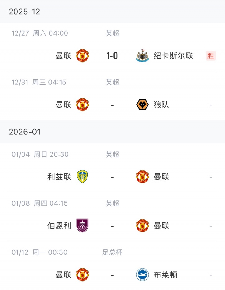 1/5!曼联蓄发哥憧憬5连胜:后4场踢狼队 利兹联 伯恩利 布莱顿