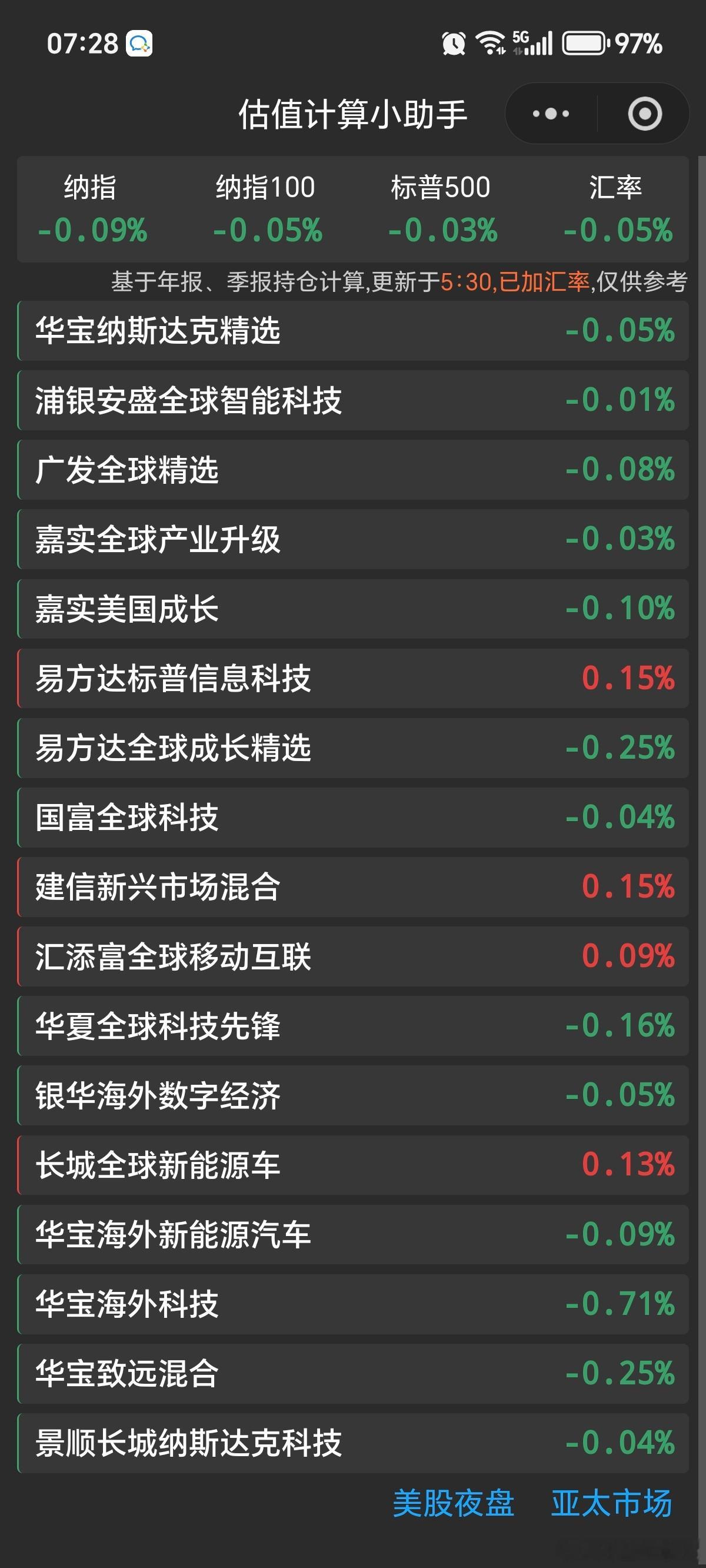 基金早上好,家人们起床啦,有空点赞互动,养铁粉/金粉/钻粉。纳指小跌,黄金小涨,白银暴涨,A股期货小红,下礼拜一大盘平开标普500:-0.03纳指100: -0.05生物科技:-0.59油气:-0.76原油:-2.49