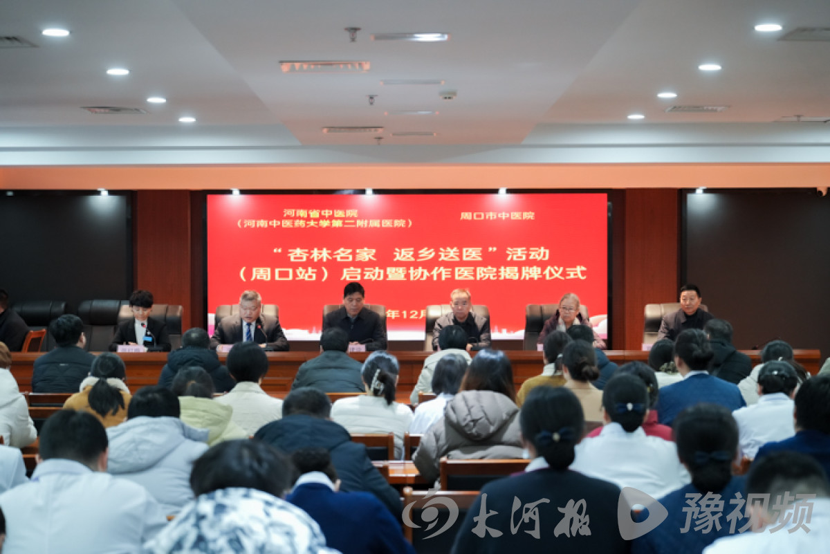 12月26日上午,“杏林名家·返乡送医”活动周口站启动暨协作医院、全国名老中医药专家传承工作室揭牌仪式在周口市中医院5号楼20楼隆重举行。河南省中医院副院长陈建设,全国优秀中医临床人才、全国名老中医邓素玲,河南省中医院对外合作办公室主任梁慕华,周口市卫生健康委二级调研员王玉栋,周口市中医院党委副书记、院长毛国璋,工会主席张红梅,纪委书记蔡华文,以及杏林返乡专家、医院职工代表齐聚现场,共同见证这一助力基层中医药发展、惠及周口百姓的重要时刻。仪式由周口市中医院工会主席张红梅主持。