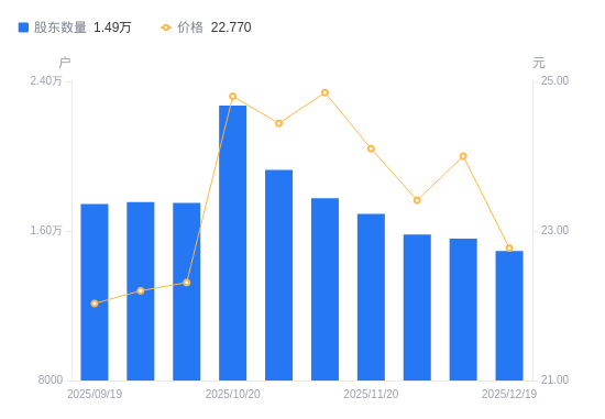 日期A股户数(户)流通A股户均持股数(股)户均持股市值(万元)2025-08-20203715157.7112.032025-08-08241084358.2110.902025-07-31276133805.019.652025-07-18141287436.8514.792025-07-10140777463.7914.992025-06-30137717629.6415.472025-06-20134957786.0215.002025-06-10145257233.9014.042025-05-30142117393.7313.732025-05-20146177188.3713.72