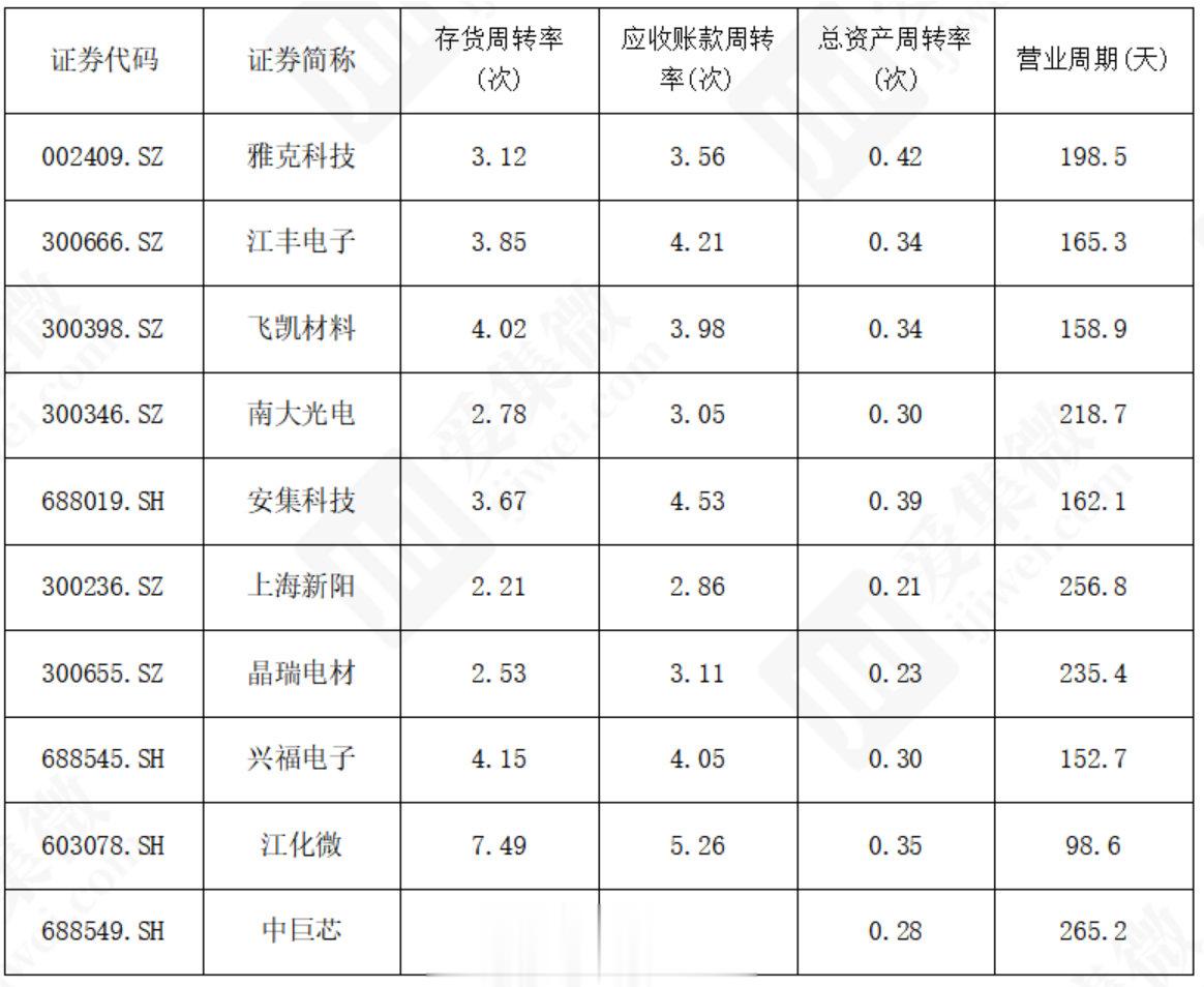 *2025年前三季度国内半导体电子化学品行业主要上市公司营运能力指标