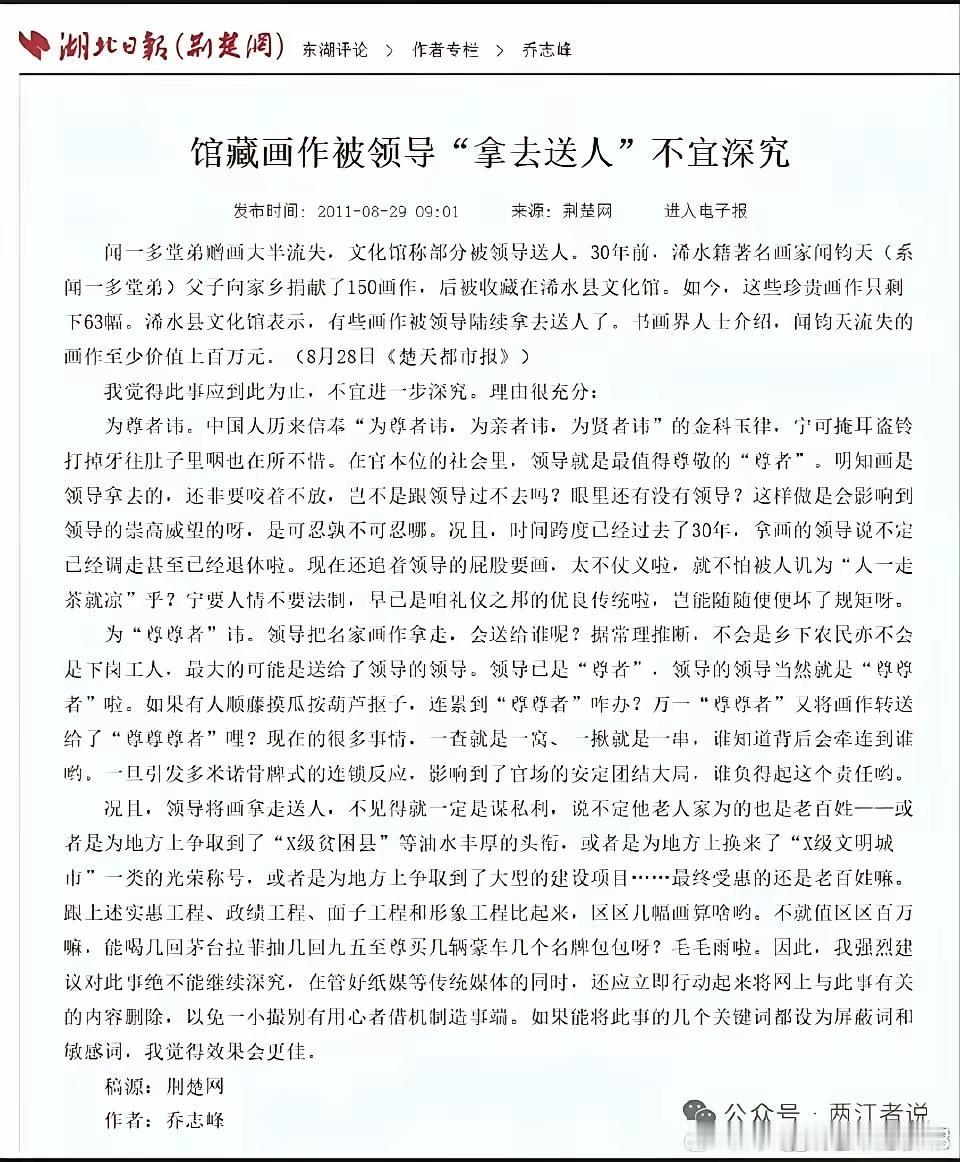 事事相似,事事不同,现在南京博物院发生的事,以前湖北浠水县也发生过,前任馆长私藏、私卖捐赠者的书画。闻一多是湖北浠水人,被私藏私卖的作品就是闻一多弟弟闻钧天的。 后来查实,湖北报刊上还有人发文,虽没有正说,旁敲力度也不小。 南京博物院 南京国家文物 南京博物馆拍卖 南京愽物馆 南京博物馆印章 金陵博物院 南京博物馆馆长 南京古物保存所