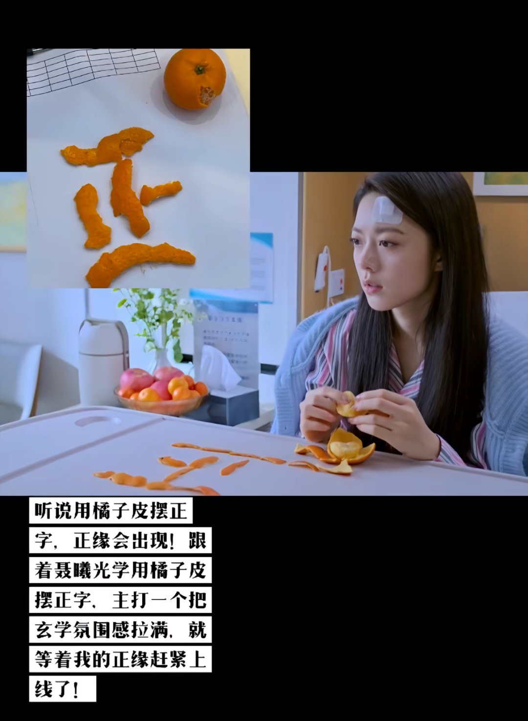 全网都在复刻橘子皮正缘骄阳似我 笑不活了!现在网上的橘子皮比橘子还多,全网跟风聂曦光摆“正”字求正缘,有宋威龙赵今麦这对天选CP兜底,橘子皮大神快显灵赐同款甜恋!