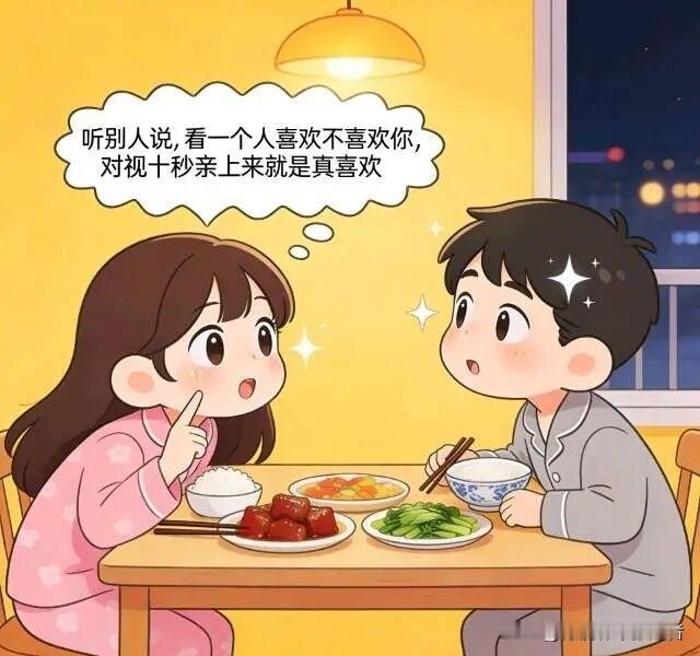 趣味漫画:女人吃饭时,突然想做个测试:老公,听别人说,看一个人喜欢不喜欢你,只要跟他对视十秒,如果他亲了上来,就证明他是真的喜欢你趣味小漫画 幽默情感漫画
