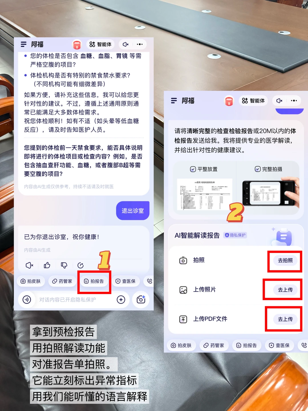 [彩虹R]拿到预检报告,用拍照解读功能,对准报告单拍照。它能立刻标出异常指标,用易懂语言解释“为什么这项不行,可以怎么调理”。