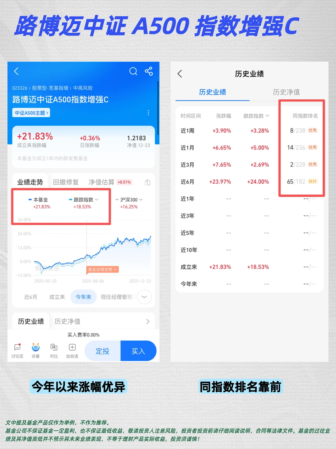 这是为什么我特别关注这个策略:路博迈中证 A500 指数增强C(023326)。它的逻辑很清晰: