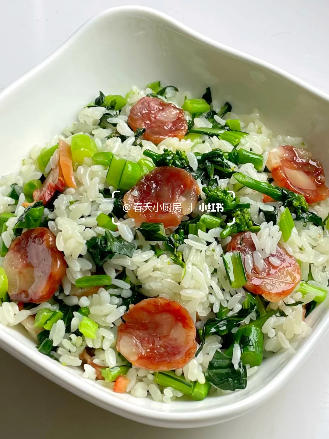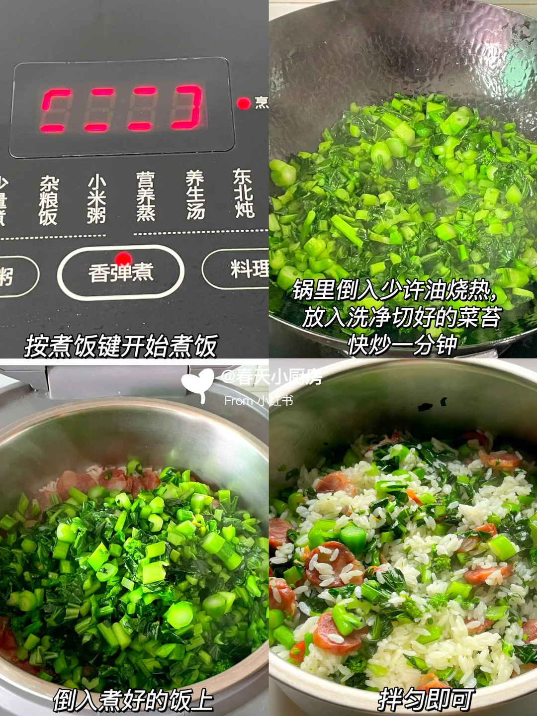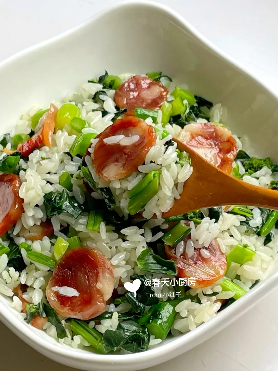 做菜我是认真的 🌈🌈 每年一到秋冬季节就特别想念还在上海时和楼下大妈学做的这个菜饭,做法和食材都很简单,这道菜苔咸肉腊肠菜饭,把冬日的时令鲜蔬与腊味的醇厚完美融合,咸肉的咸香,腊肠的咸甜,油脂释放出的醇香,让米饭更加香糯,一碗下去超满足!