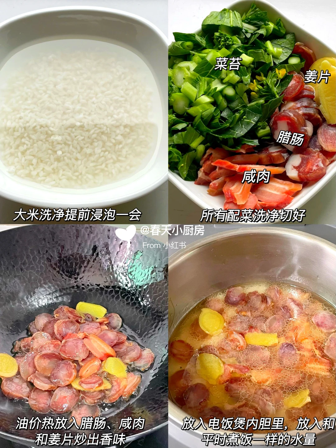 🌻咸肉和腊肠本身有咸味,煮饭时不需要额外加盐,避免过咸。
