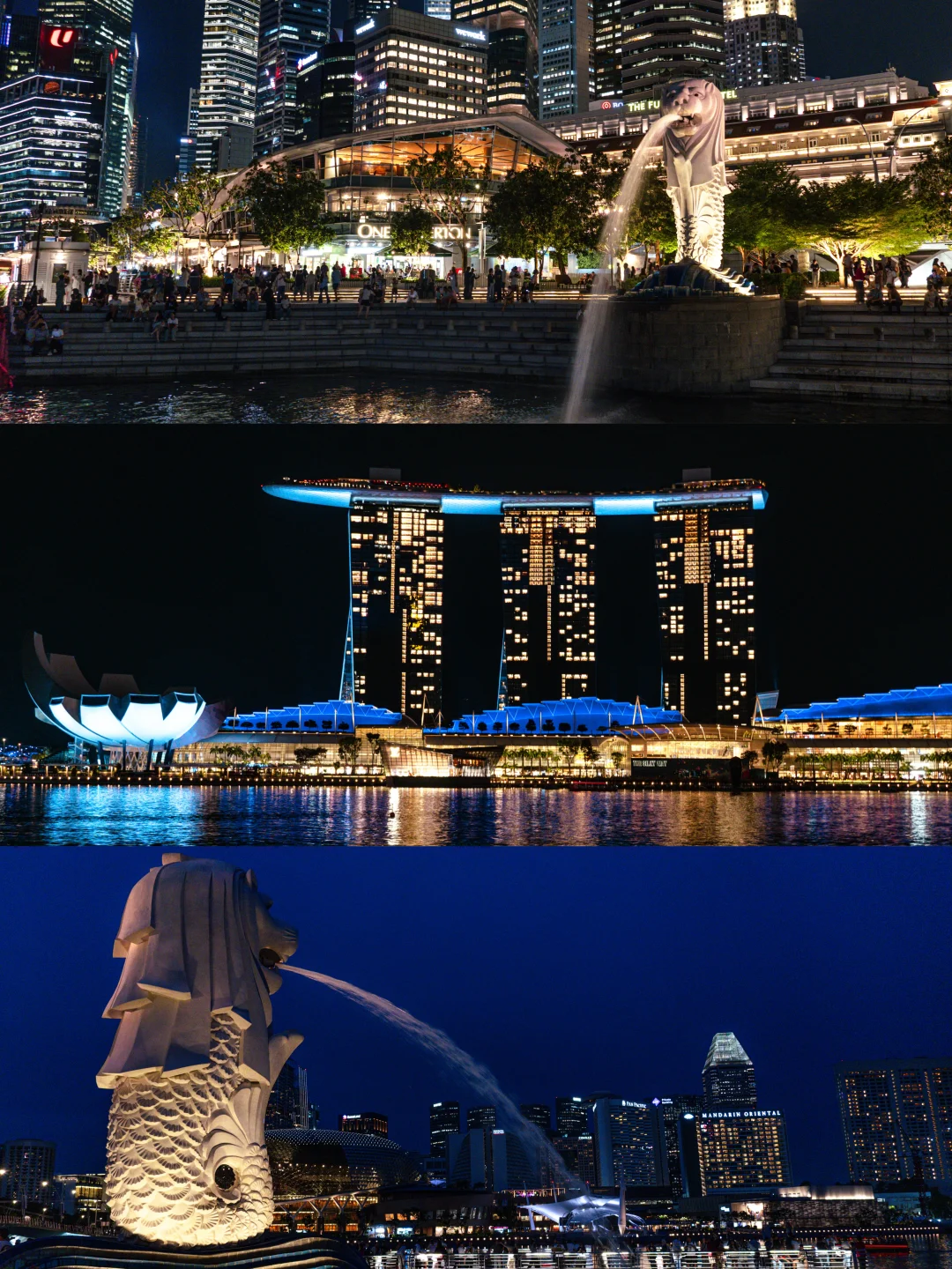 ✔️鱼尾狮公园,除了拍鱼尾狮接财照片之外,周边夜景🌃把繁华具象化了
