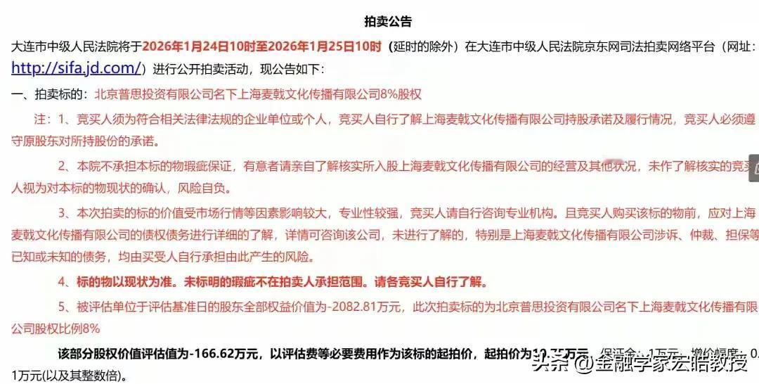 王健林父子投资双双遇到寒冬!昔日商业版图再收缩! 刚刚看到王思聪投资再曝翻车!名下普思投资持有的麦戟文化8%股权遭拍卖,估值为负仍以10.75万起拍,买家还得倒贴钱接这个“烫手山芋”;熊猫互娱破产让他亏近20亿,后续还陷千万执行纠纷;新创品牌“牛校长”百店计划搁浅,多家关联公司注销。父亲王健林给他创业练手的多少个小目标就这样折腾没了。外界都在说,不怕富二代花钱,就怕富二代有志向要创业。 王健林日子也不好过,万达近年靠卖资产还债,名下股份遭拍卖,家族财富较巅峰时缩水2100亿。父子俩押注新兴赛道接连折戟,不过王健林还是不肯闲着,还经常去全国各地考察文旅项目,虽然看起来暴瘦,但是精神状态还不错。 王健林现在收缩战线偿债但同时也在不断找机会东山再起,王思聪曾经风光的商业布局如今接连遇阻,让人唏嘘不已!