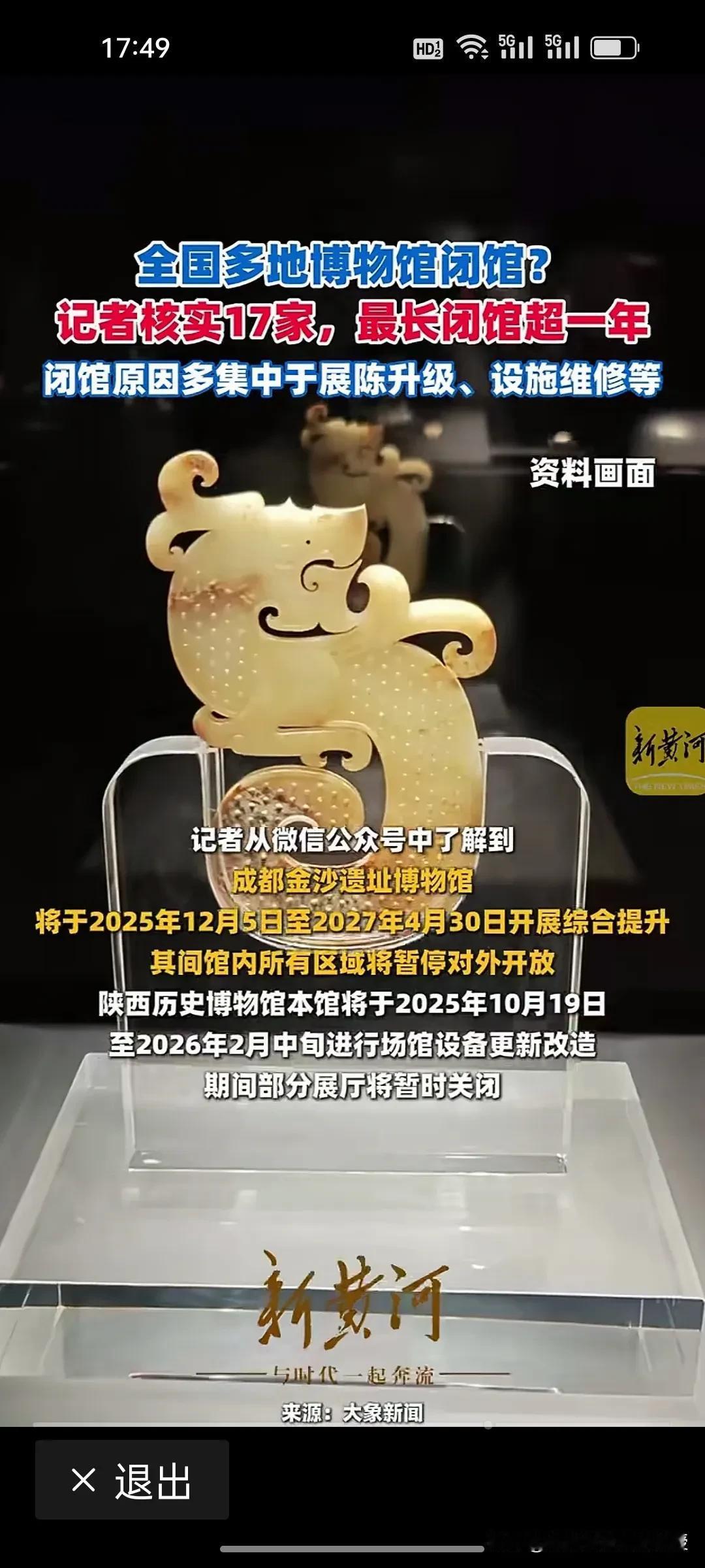 近期国内17家博物馆扎堆闭馆!最长停摆一年,预计是以下三大原因。 根据《新黄