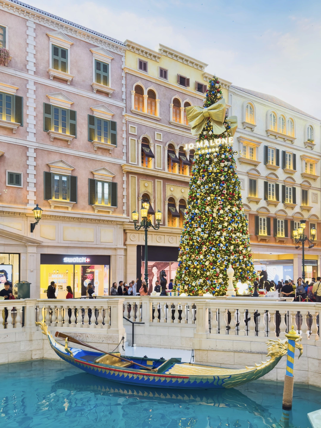 图❶② 威尼斯人购物中心还有一棵祖马龙的圣诞树,在运河畔也相当貌美